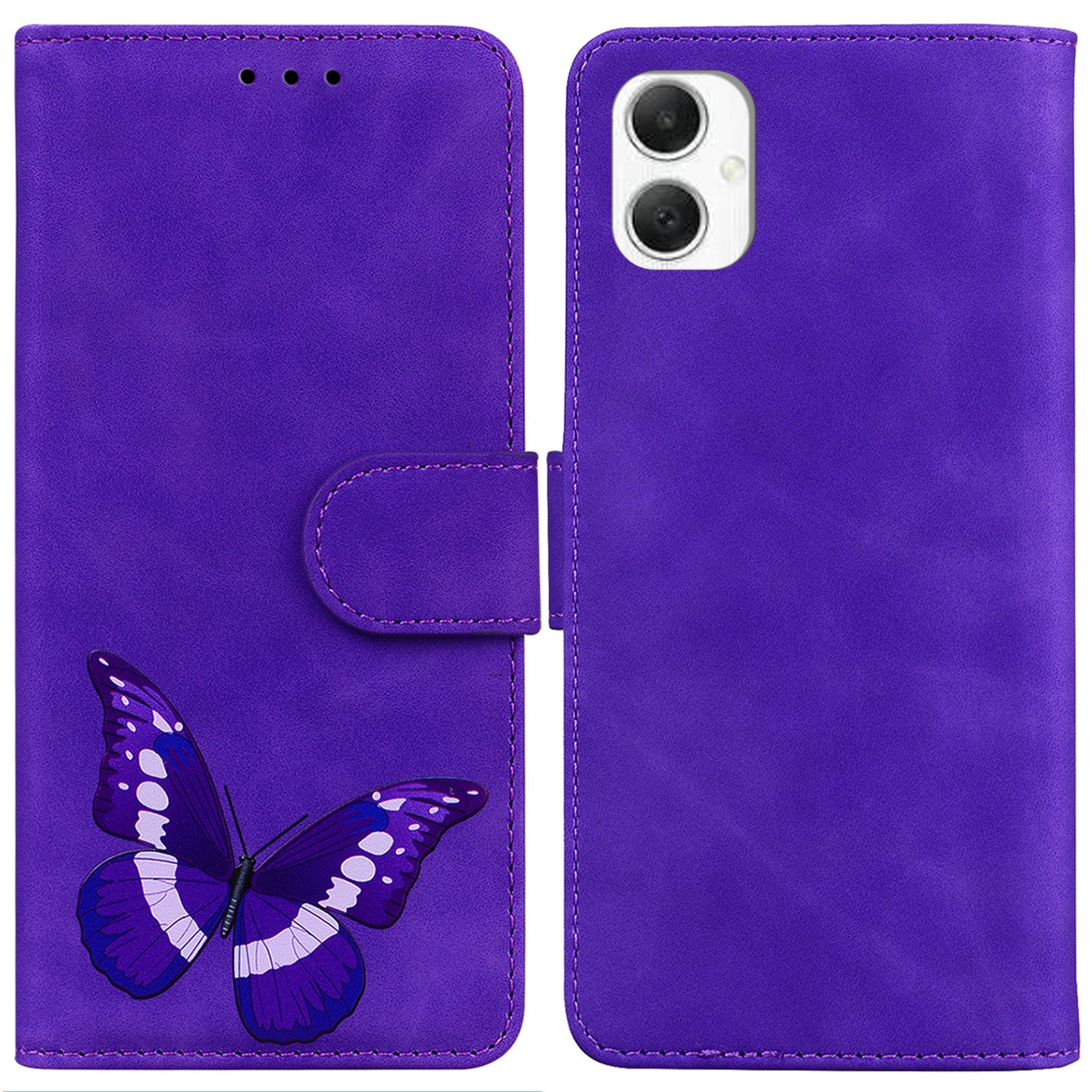 For Samsung Galaxy A06 Stand Case PU Leather Phone Cover Butterfly Printed - Purple