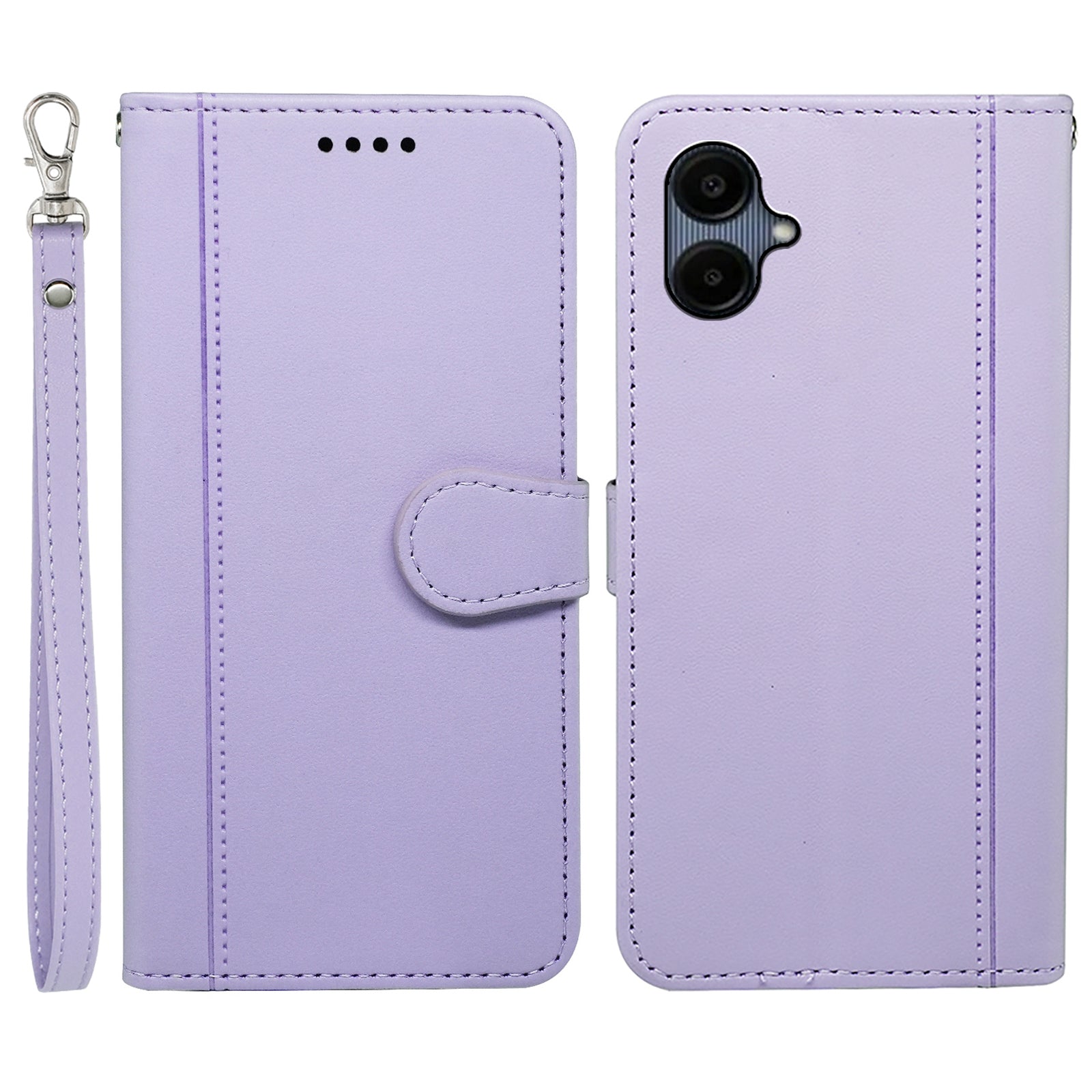 For Samsung Galaxy A06 Wallet Case Magnetic Snap Leather Phone Cover with Strap - Purple