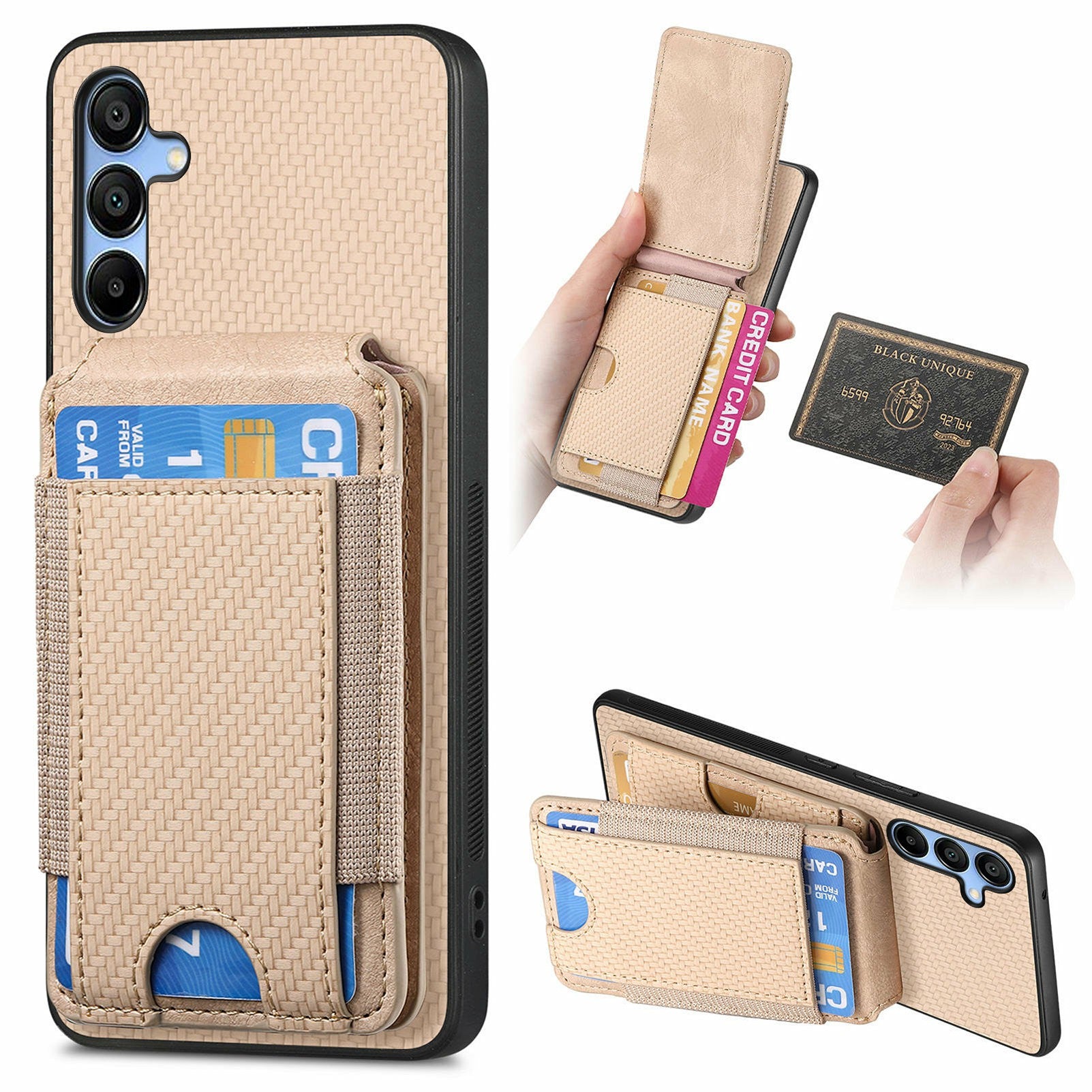 For Samsung Galaxy A16 4G / 5G Case Card Holder Leather+PC+TPU Kickstand Phone Cover - Khaki