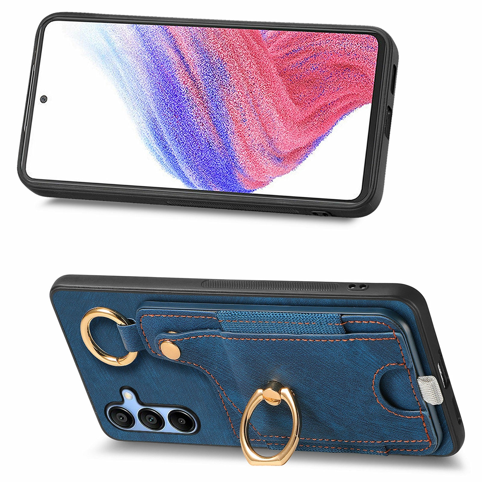 For Samsung Galaxy A16 4G / 5G Case Card Slots Leather+TPU Phone Cover with Ring Buckle - Blue