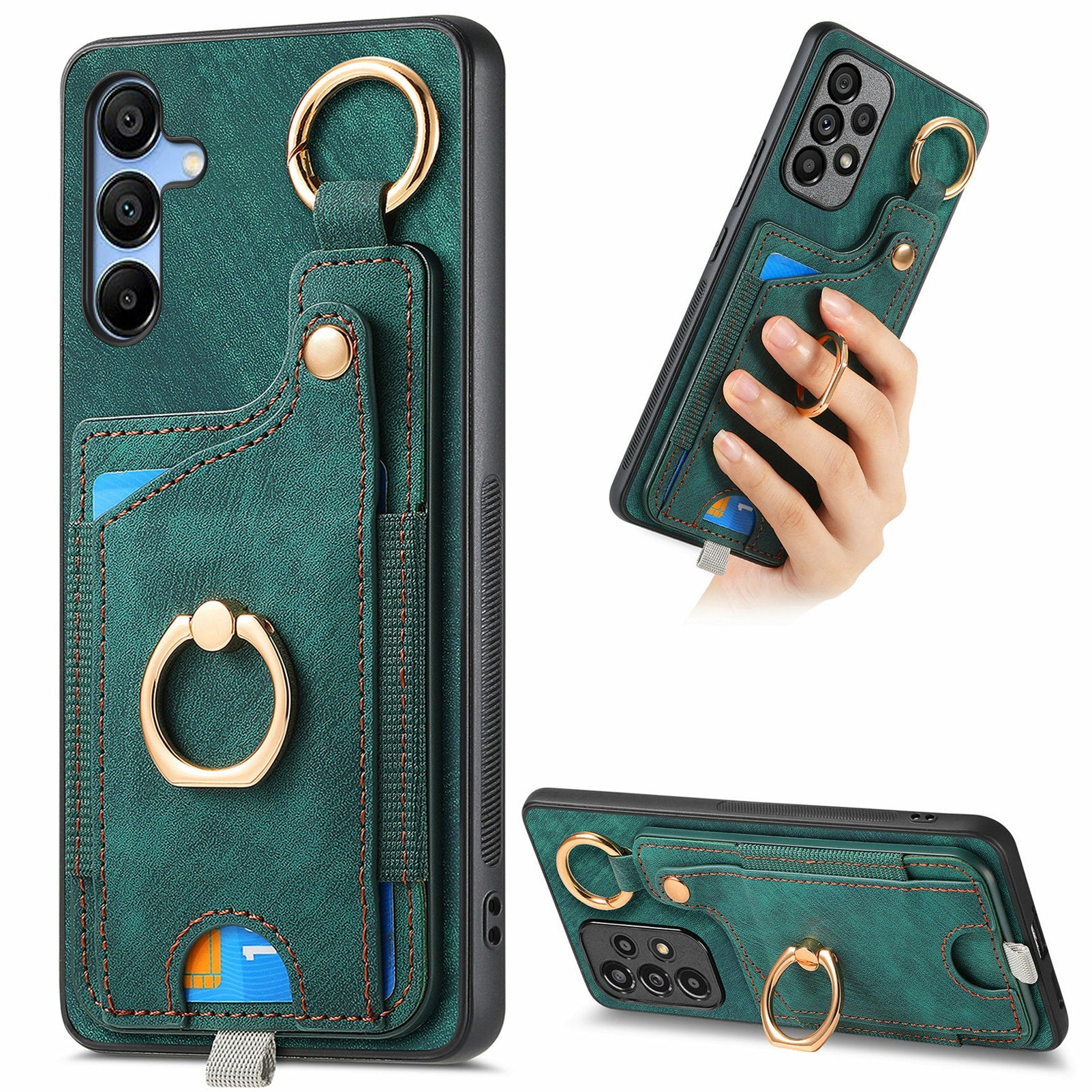 For Samsung Galaxy A16 4G / 5G Case Card Slots Leather+TPU Phone Cover with Ring Buckle - Green