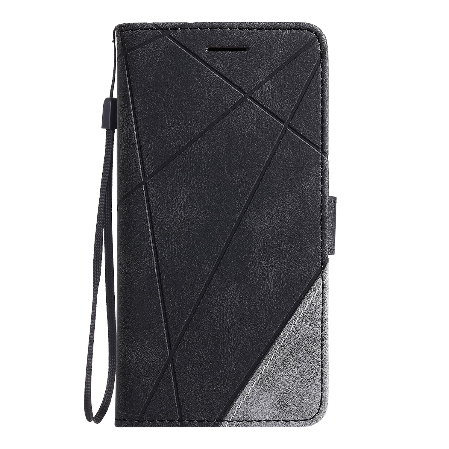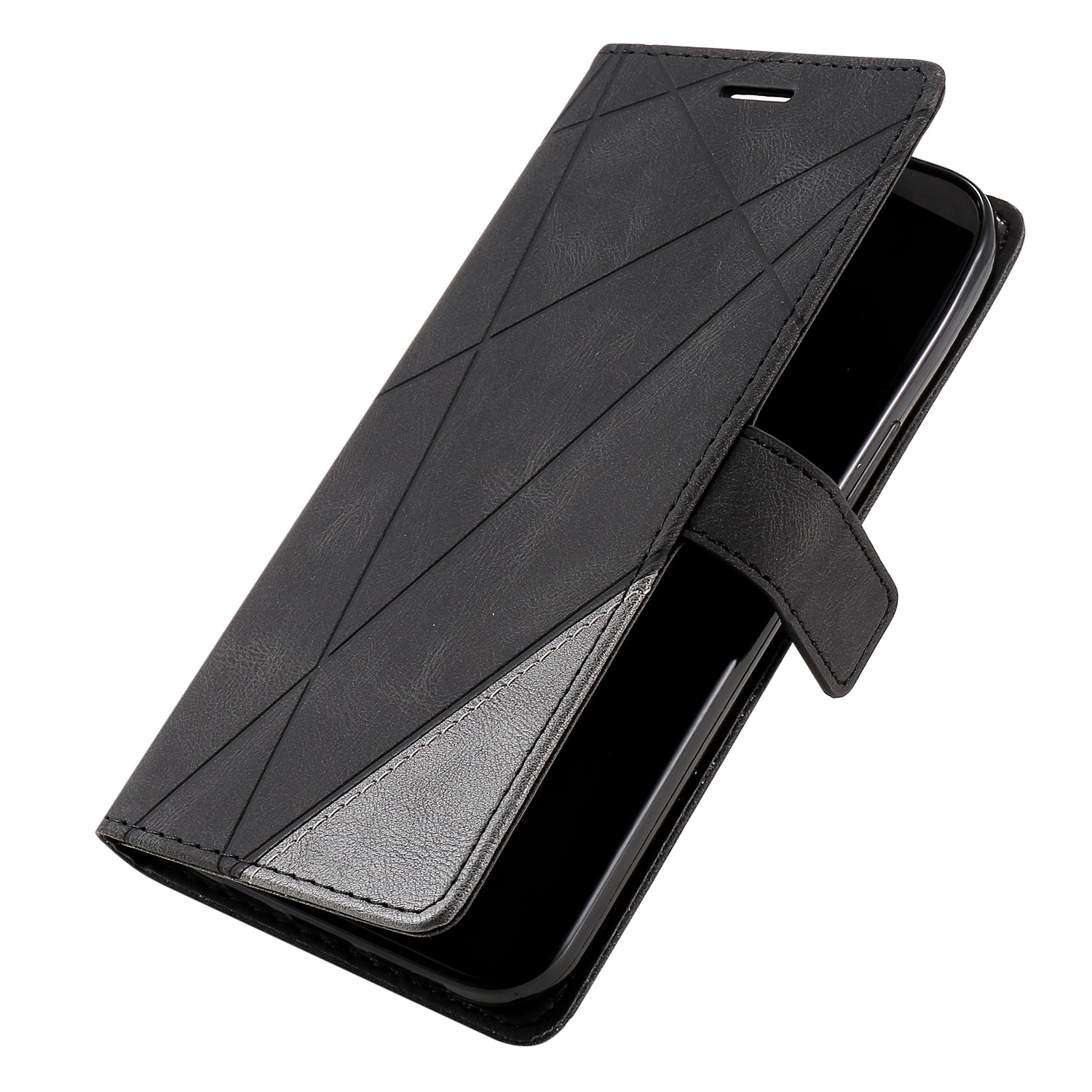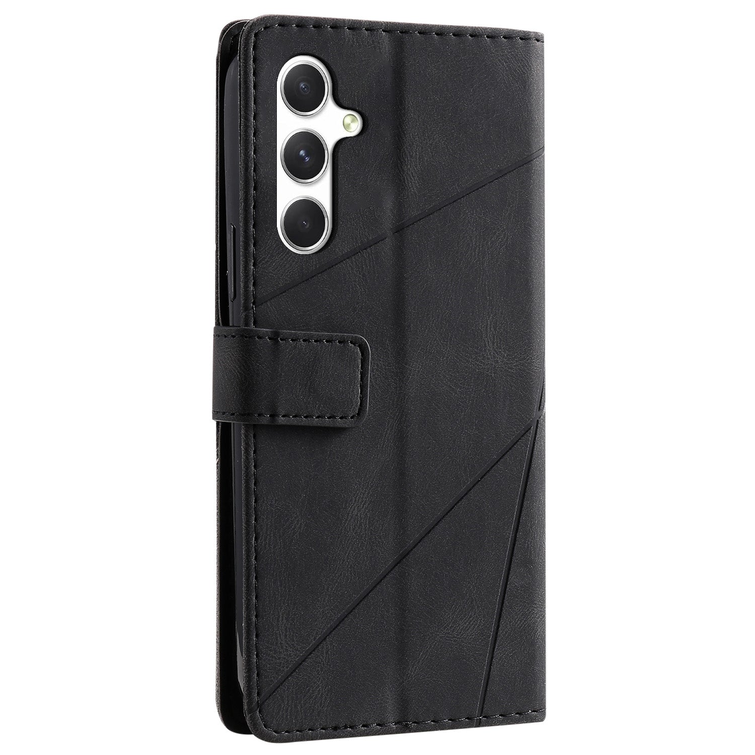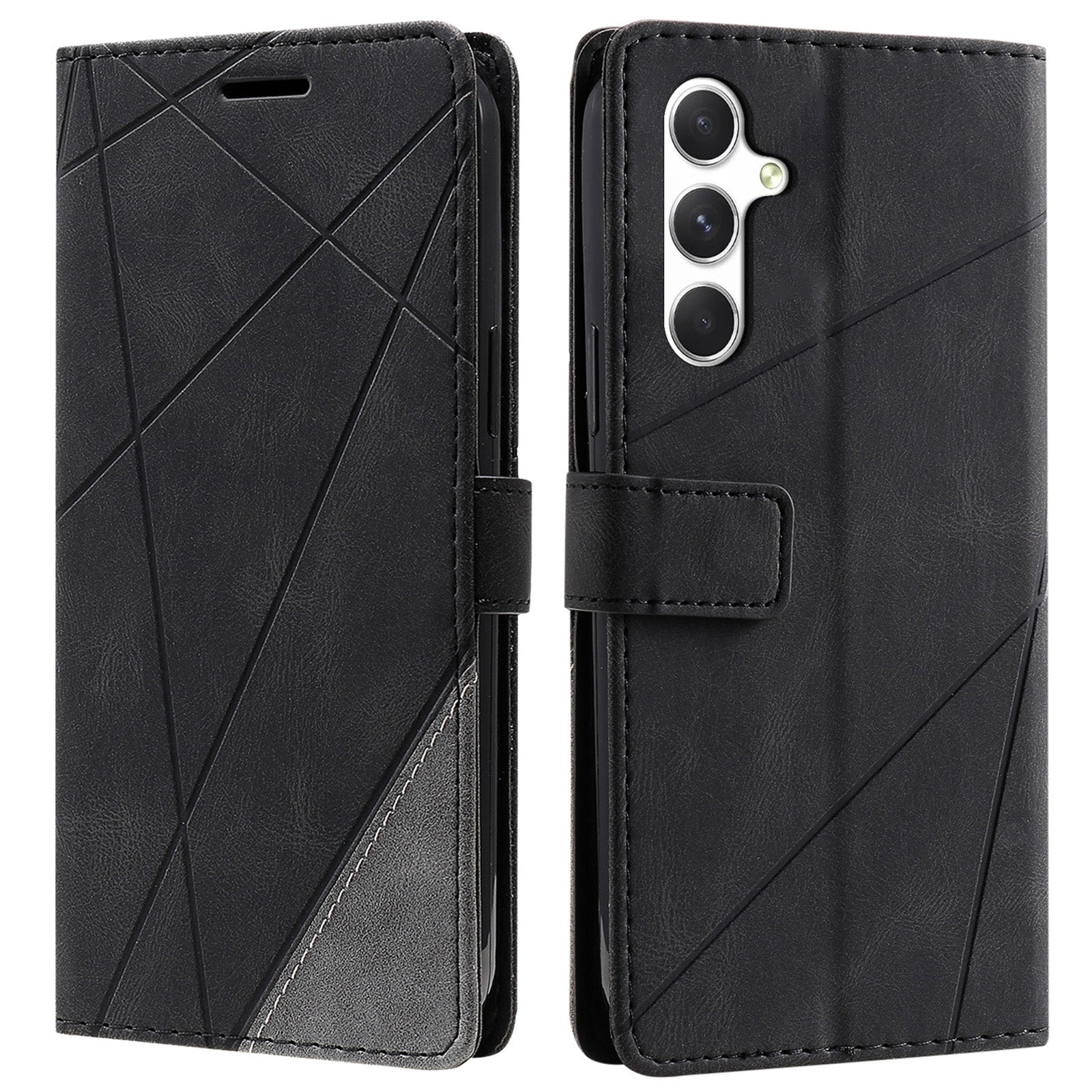 For Samsung Galaxy A16 4G / 5G Case Imprinted Lines PU Leather Splicing Wallet Phone Cover - Black