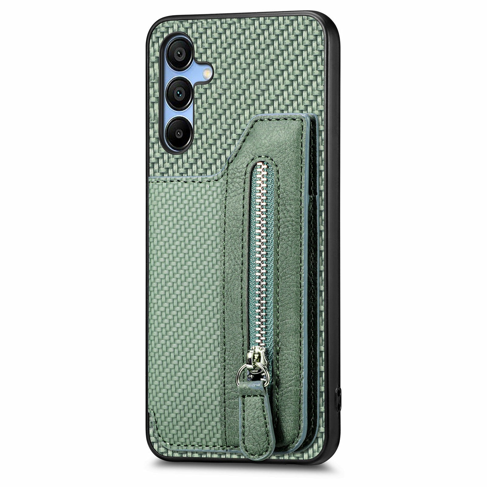 For Samsung Galaxy A16 4G / 5G Case Leather+PC+TPU Zipper Pocket Kickstand Phone Cover - Green