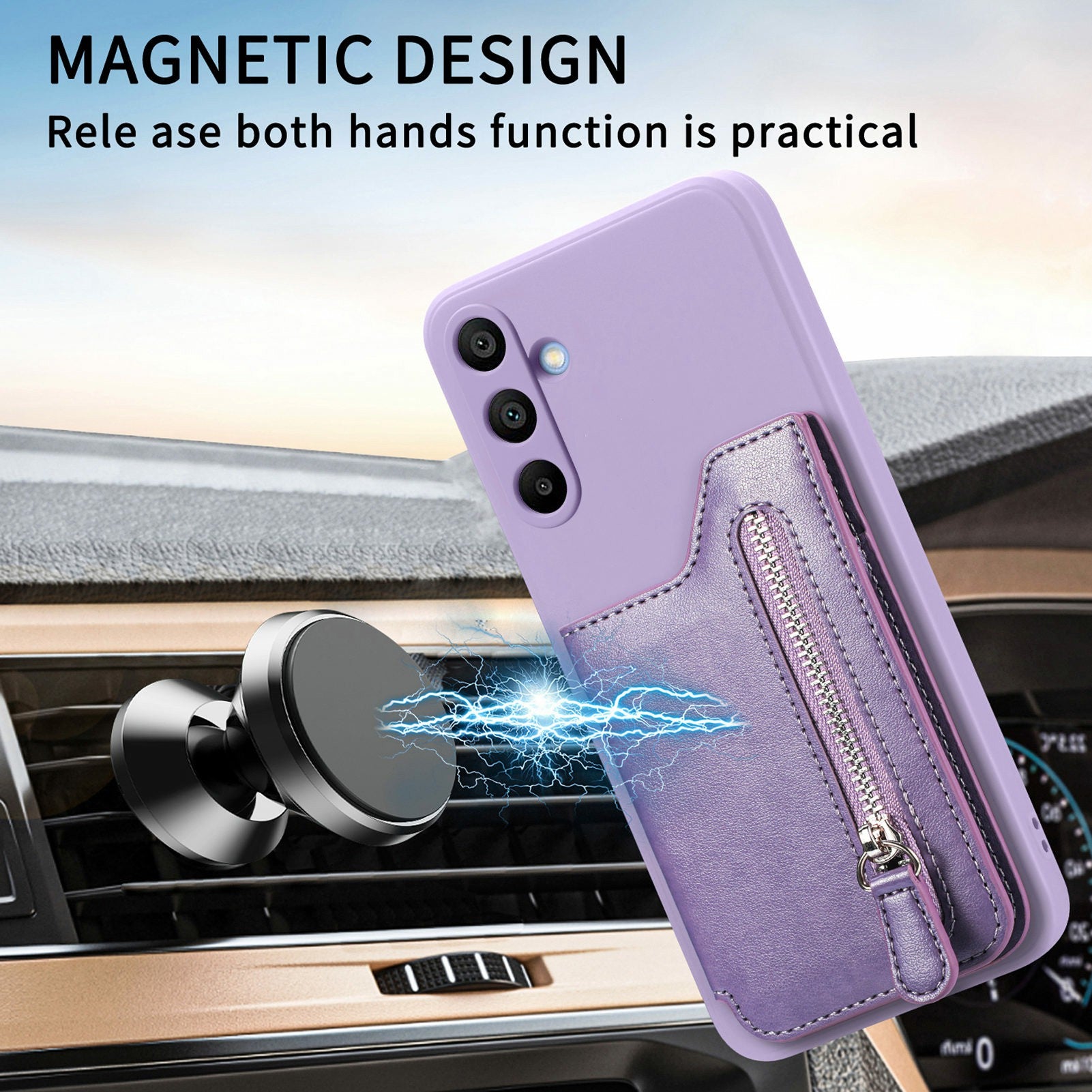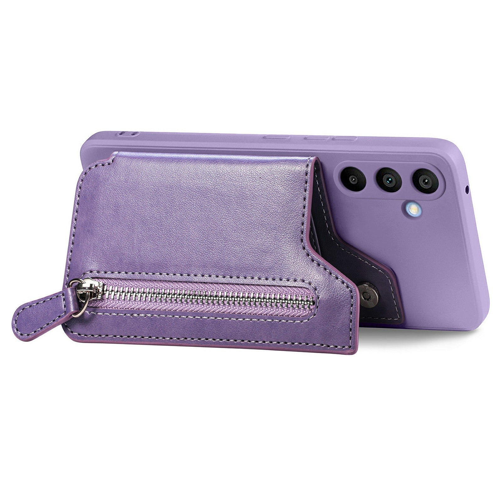 For Samsung Galaxy A16 4G / 5G Case PU Leather+TPU Phone Cover with Zipper Pocket Wallet - Purple