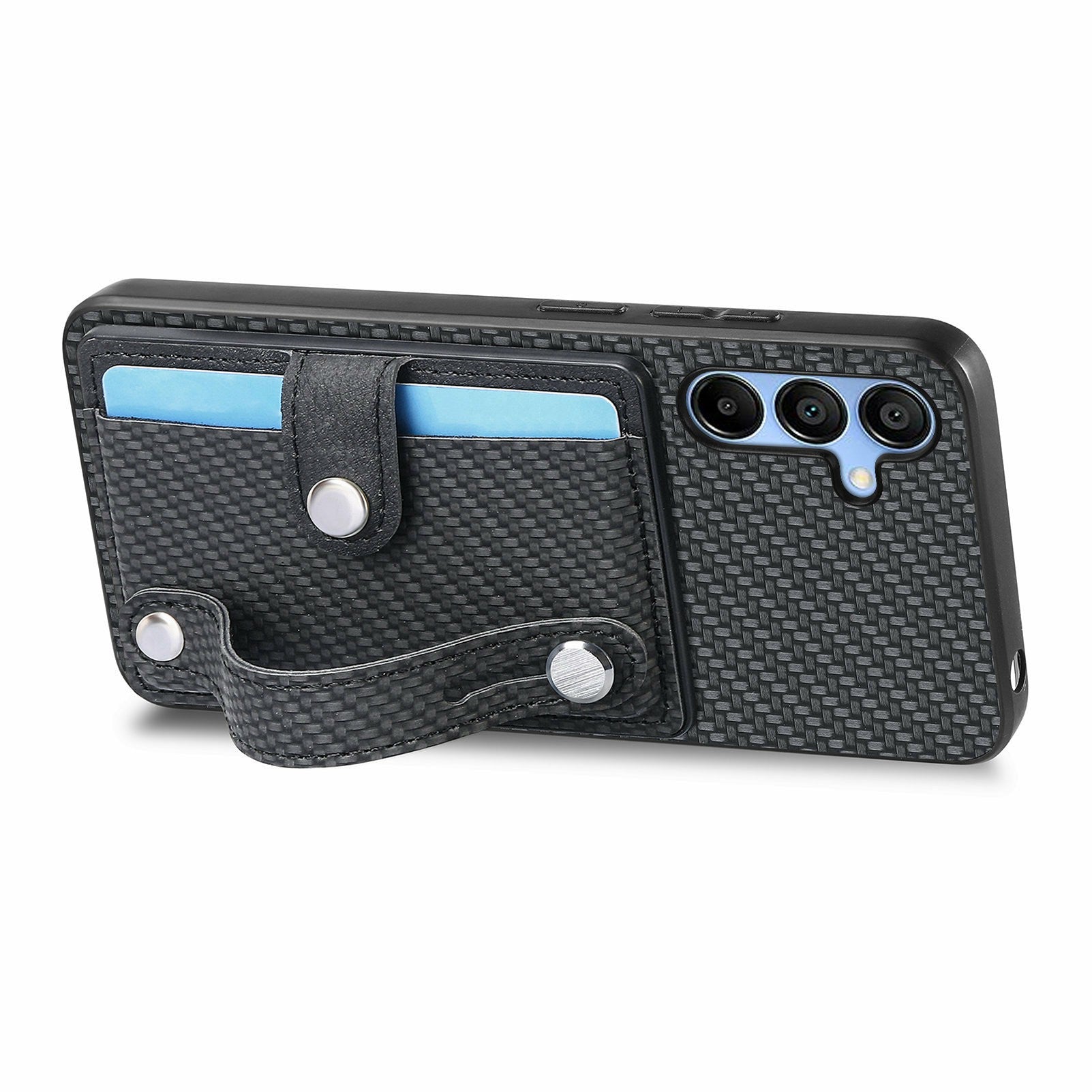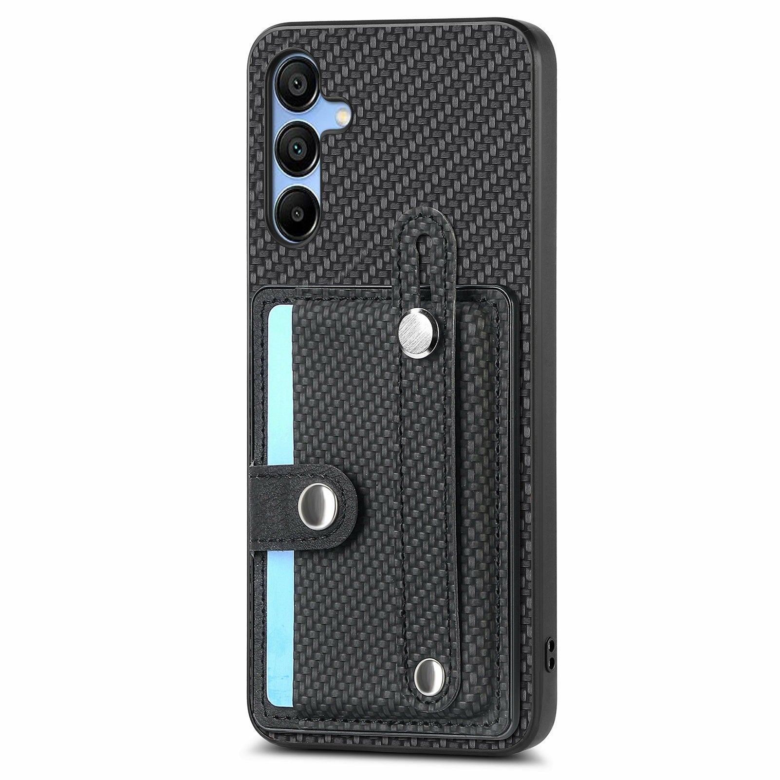 For Samsung Galaxy A16 4G / 5G Case Wristband Anti-Drop Leather Back Cover Card Holder - Black