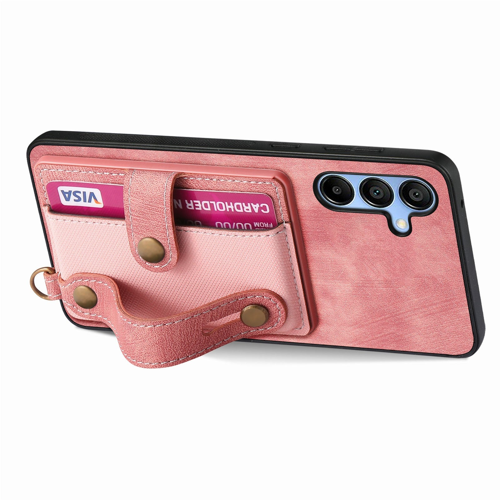 For Samsung Galaxy A16 4G / 5G Case Wristband Kickstand PU Leather Retro Back Cover Card Holder - Pink