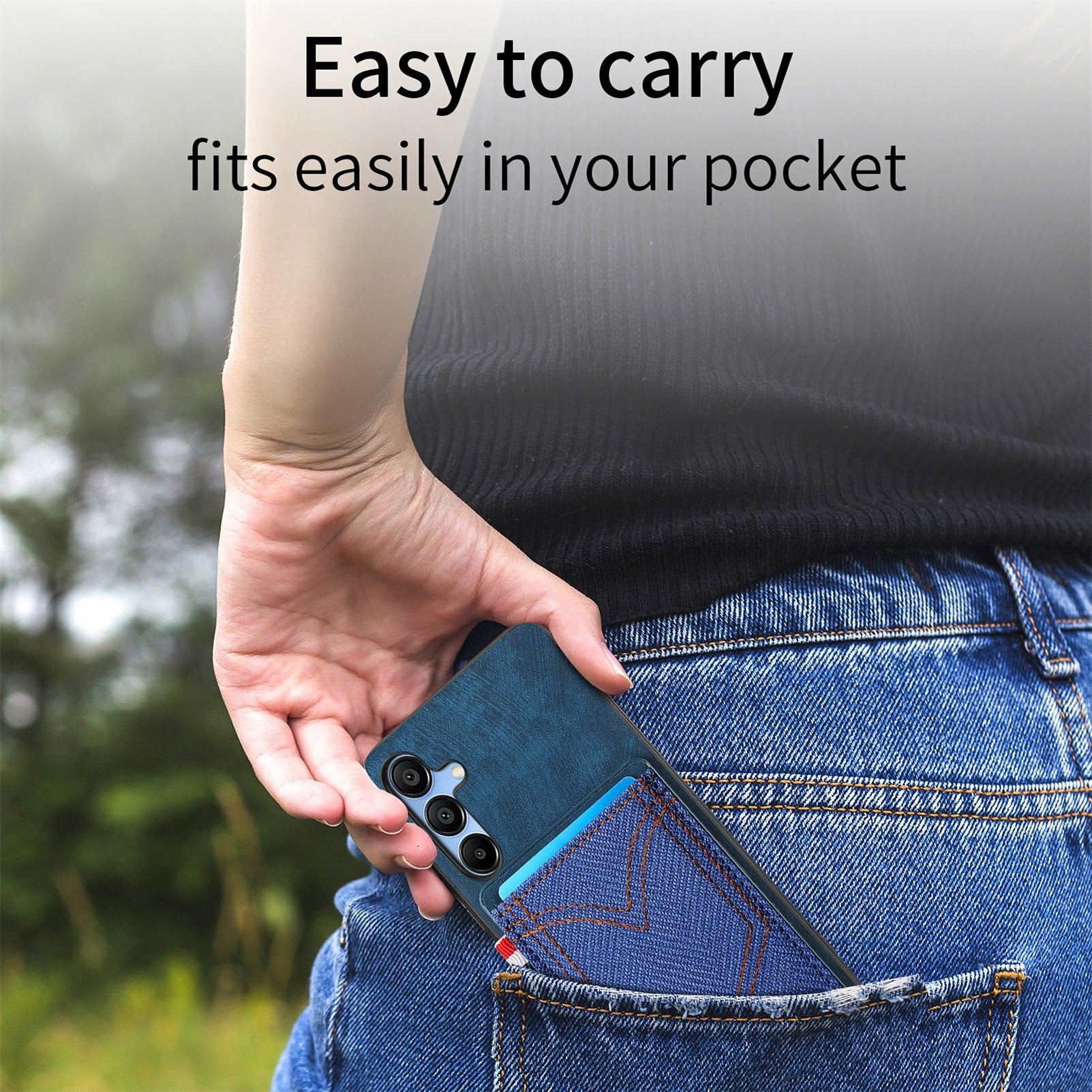For Samsung Galaxy A16 4G / 5G Phone Case Retro Jean Cloth Texture Leather Back Cover Card Holder - Pink