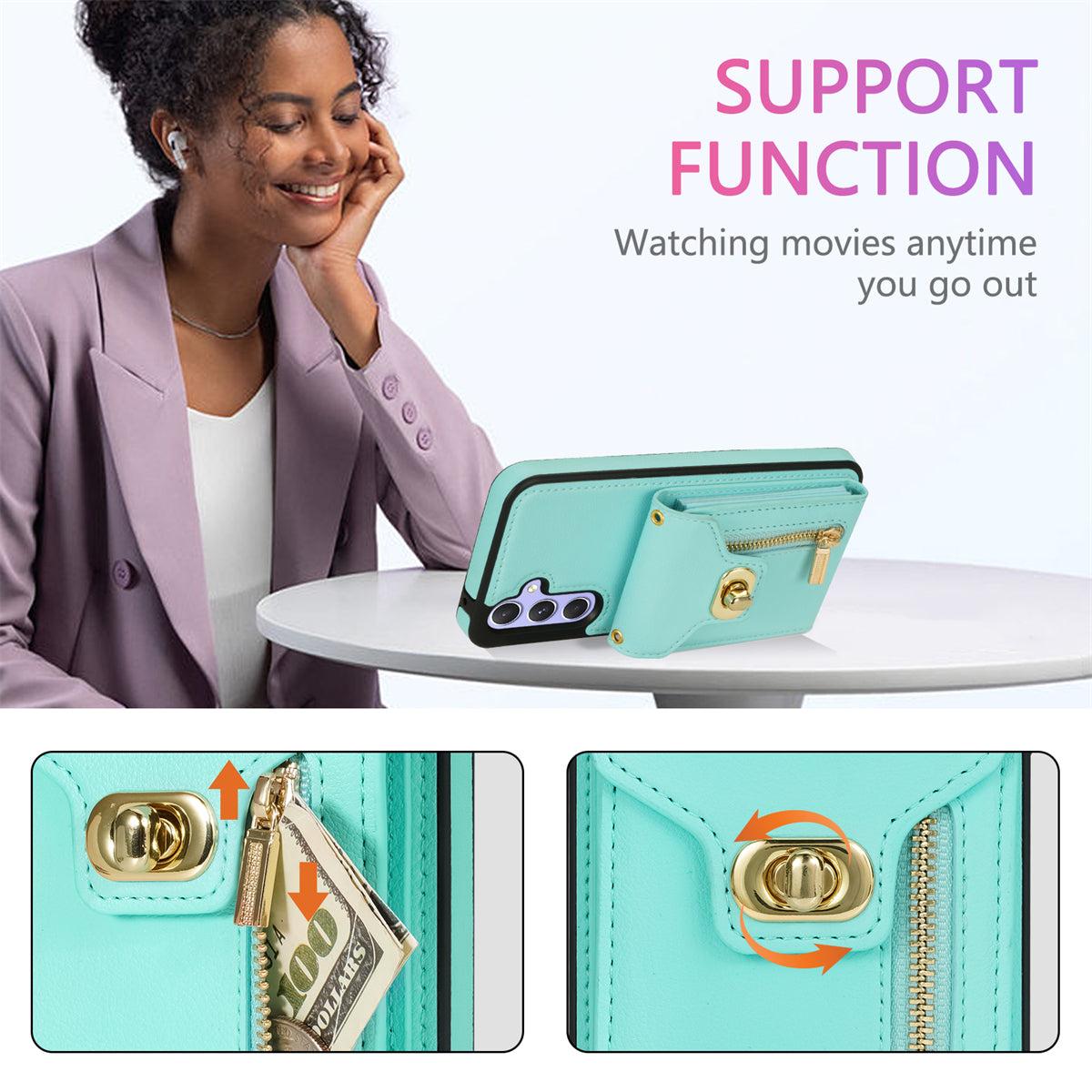 For Samsung Galaxy A16 5G  /  4G Case Leather + TPU Phone Cover with Card Bag, Shoulder Strap - Green
