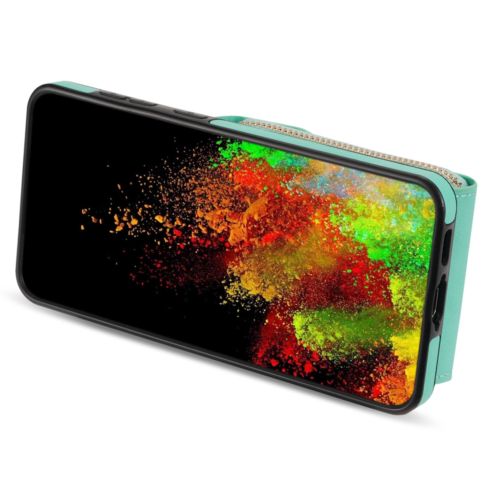 For Samsung Galaxy A16 5G  /  4G Case Zipper Wallet Leather+TPU Phone Cover with Strap - Mint Green