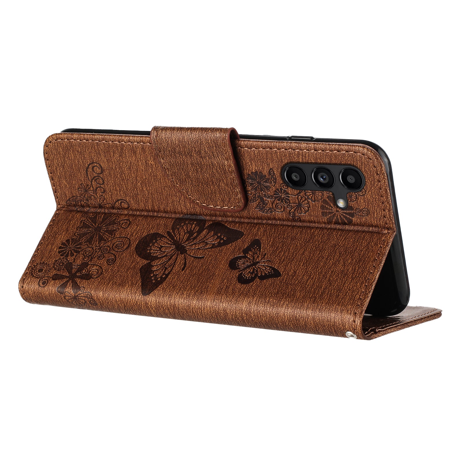 For Samsung Galaxy A16 5G / A16 4G Case Butterflies Flower Leather Wallet Flip Phone Cover - Brown