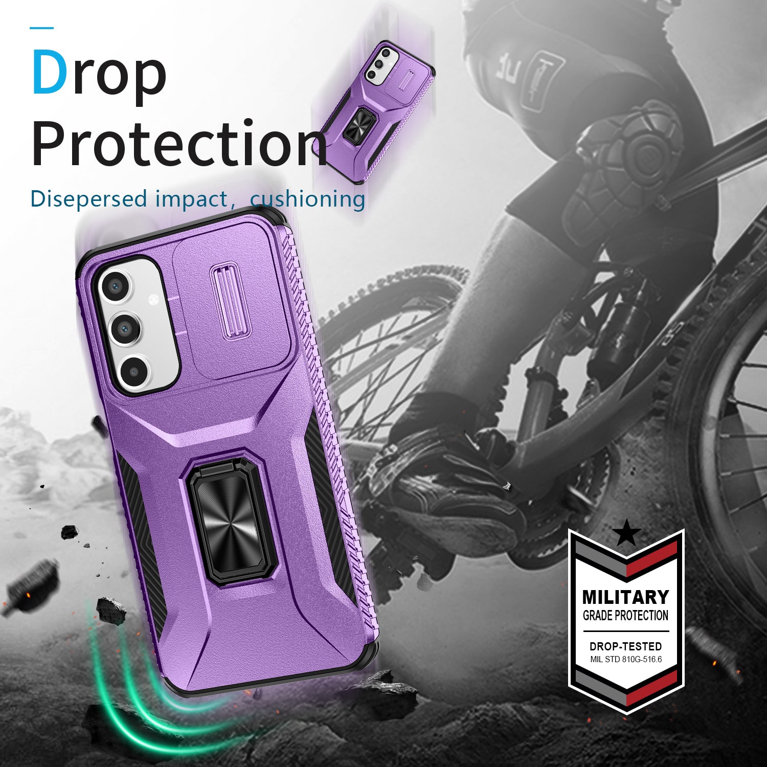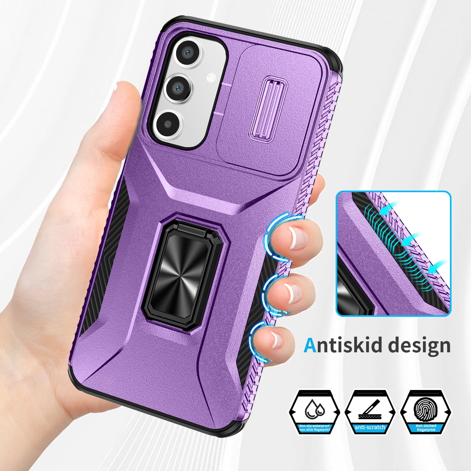 For Samsung Galaxy A16 5G / A16 4G Case Camshield Kickstand TPU+PC Anti-Slip Phone Cover - Purple