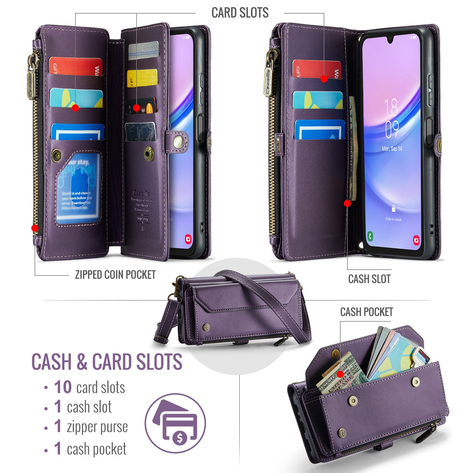 Ample Card and Cash Slots: Featuring 10 card slots, 1 cash slot, 1 zippered purse, and a dedicated coin pocket, this wallet provides organized and secure storage for all your essentials