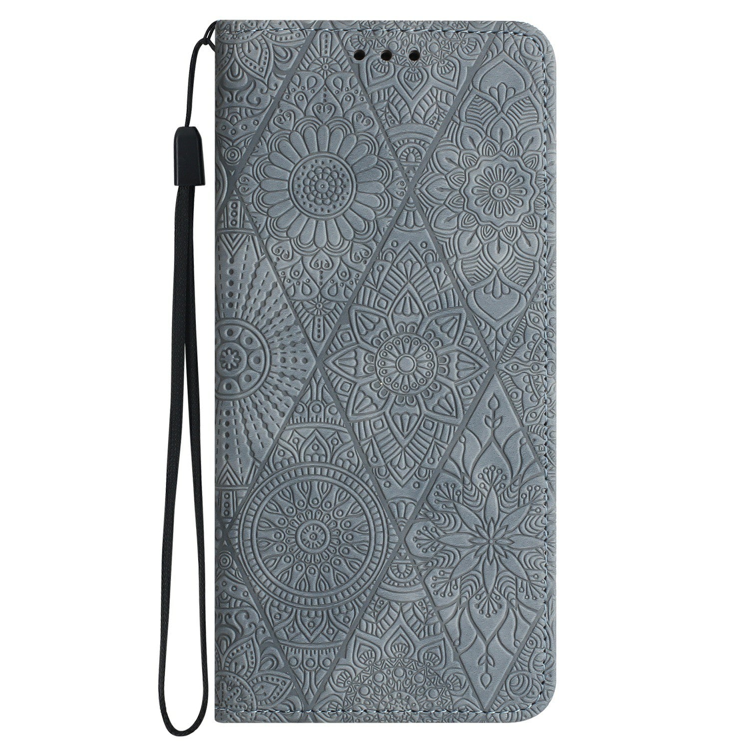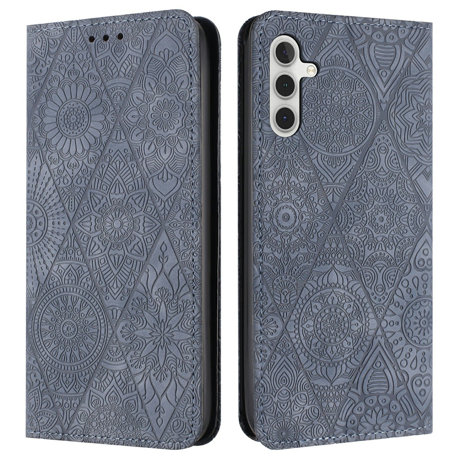For Samsung Galaxy A16 5G / A16 4G Case Imprinted Flower Wallet Stand Leather Phone Cover - Grey