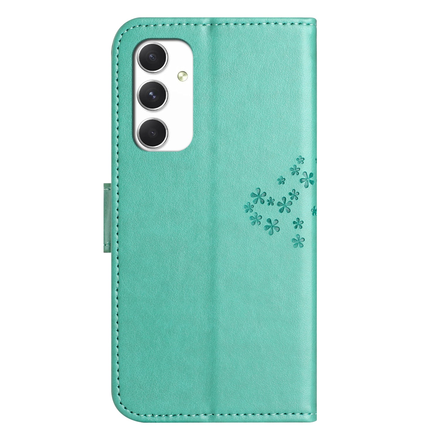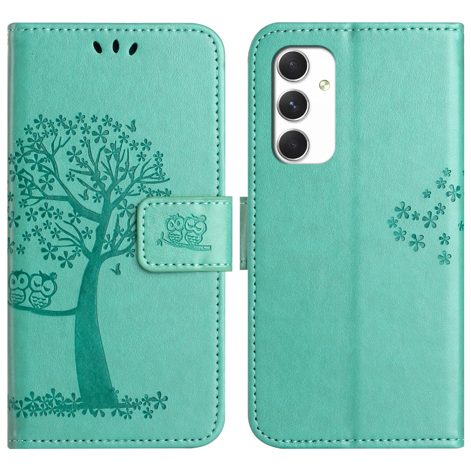 For Samsung Galaxy A16 5G / A16 4G Case PU Leather Owl Tree Imprinted Wallet Phone Cover - Cyan