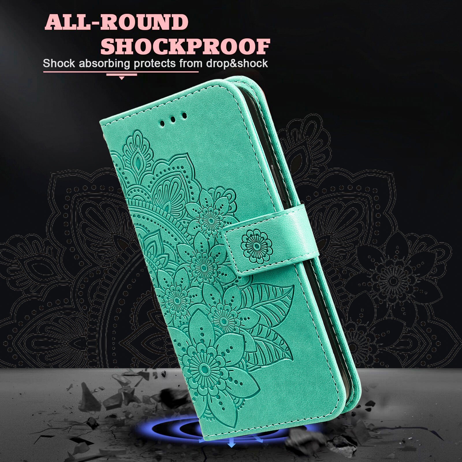 For Samsung Galaxy A16 5G / A16 4G Case PU Leather Wallet Floral Phone Cover Stand View - Green