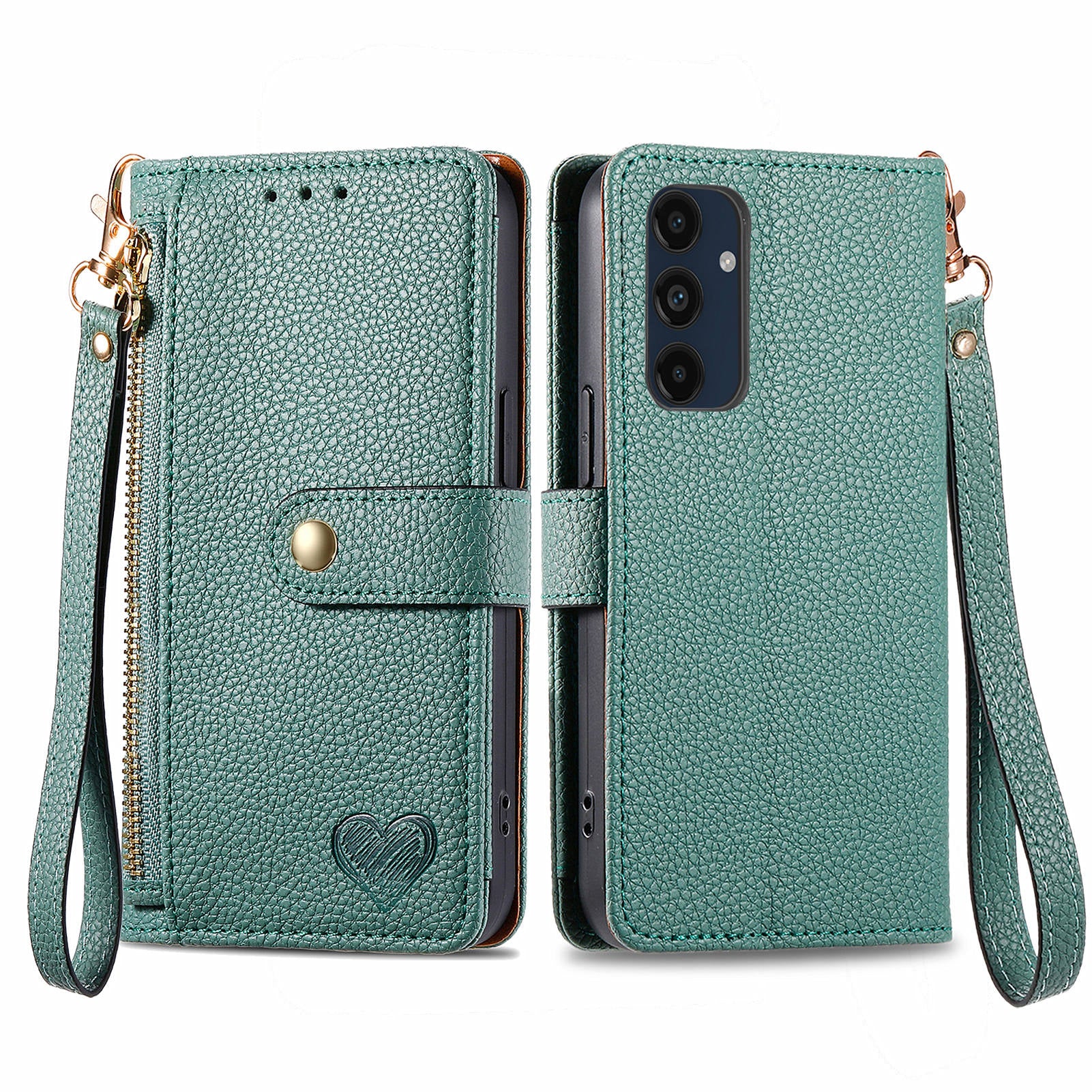 For Samsung Galaxy A16 5G / A16 4G Case RFID Blocking Zipper Pocket Leather Wallet Phone Cover - Green