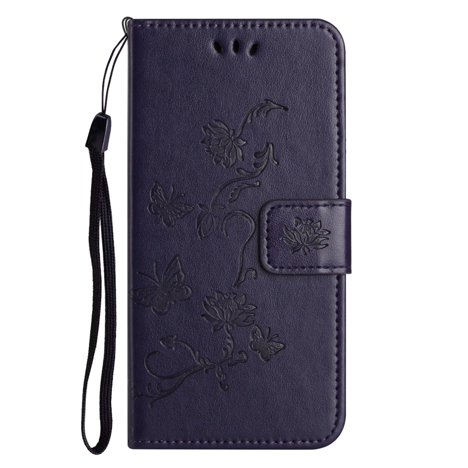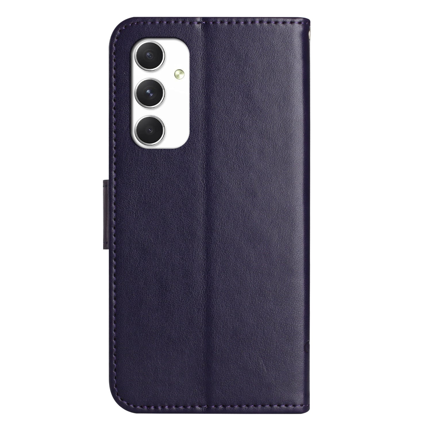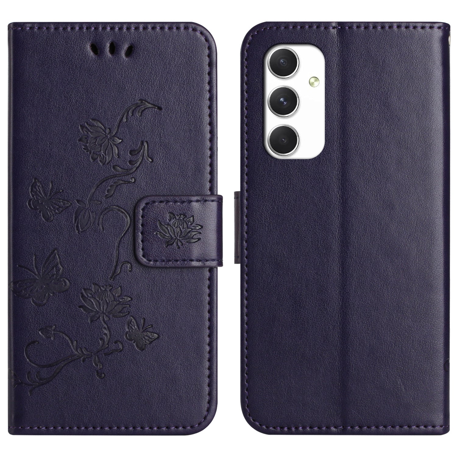 For Samsung Galaxy A16 5G / A16 4G Case Wallet Stand Imprinted Butterfly Flower PU Leather Phone Cover - Dark Purple