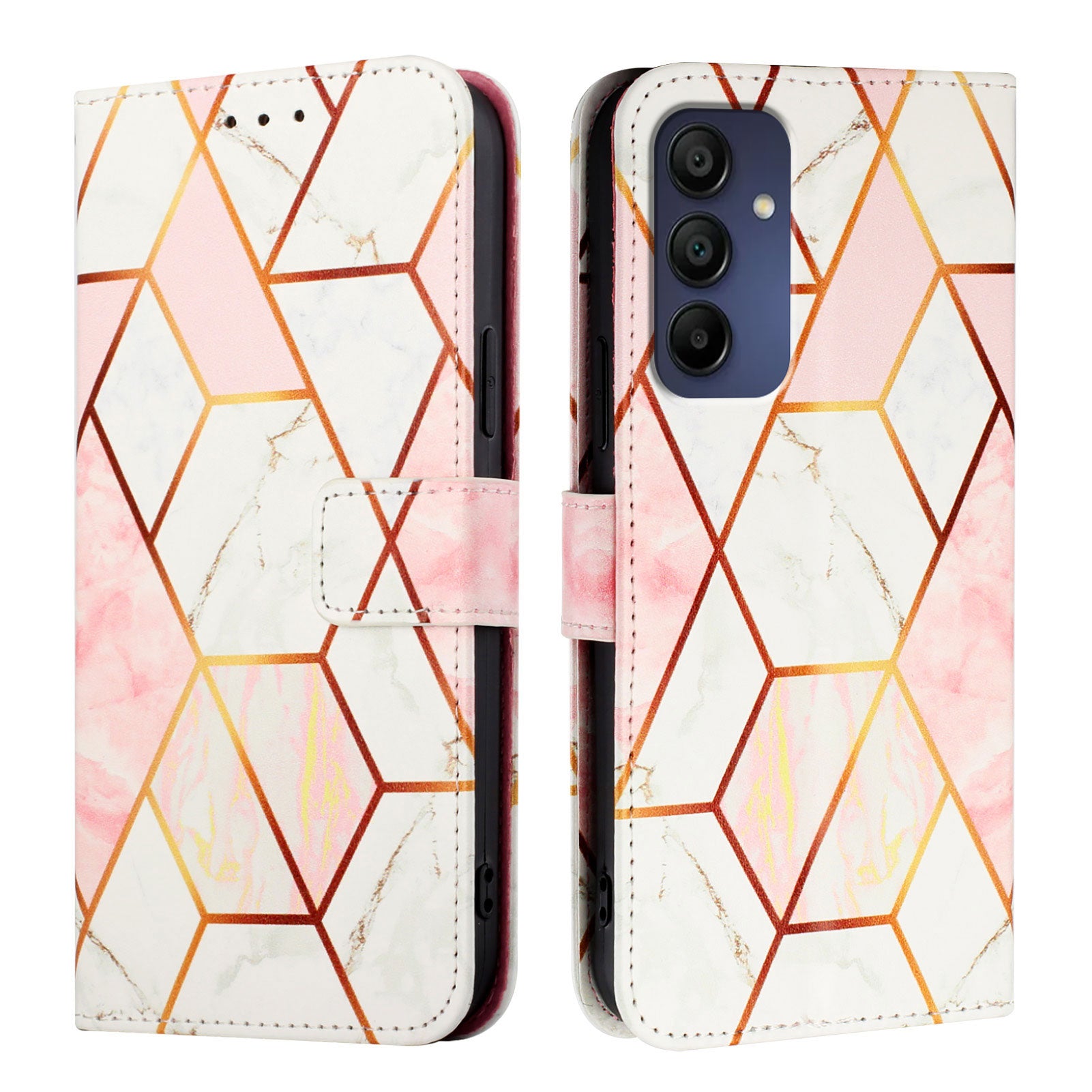 For Samsung Galaxy A16 5G / A16 4G Case YB Pattern Printing Leather Series-5   Marble Pattern Wallet Phone Cover -  Pink / White LS002