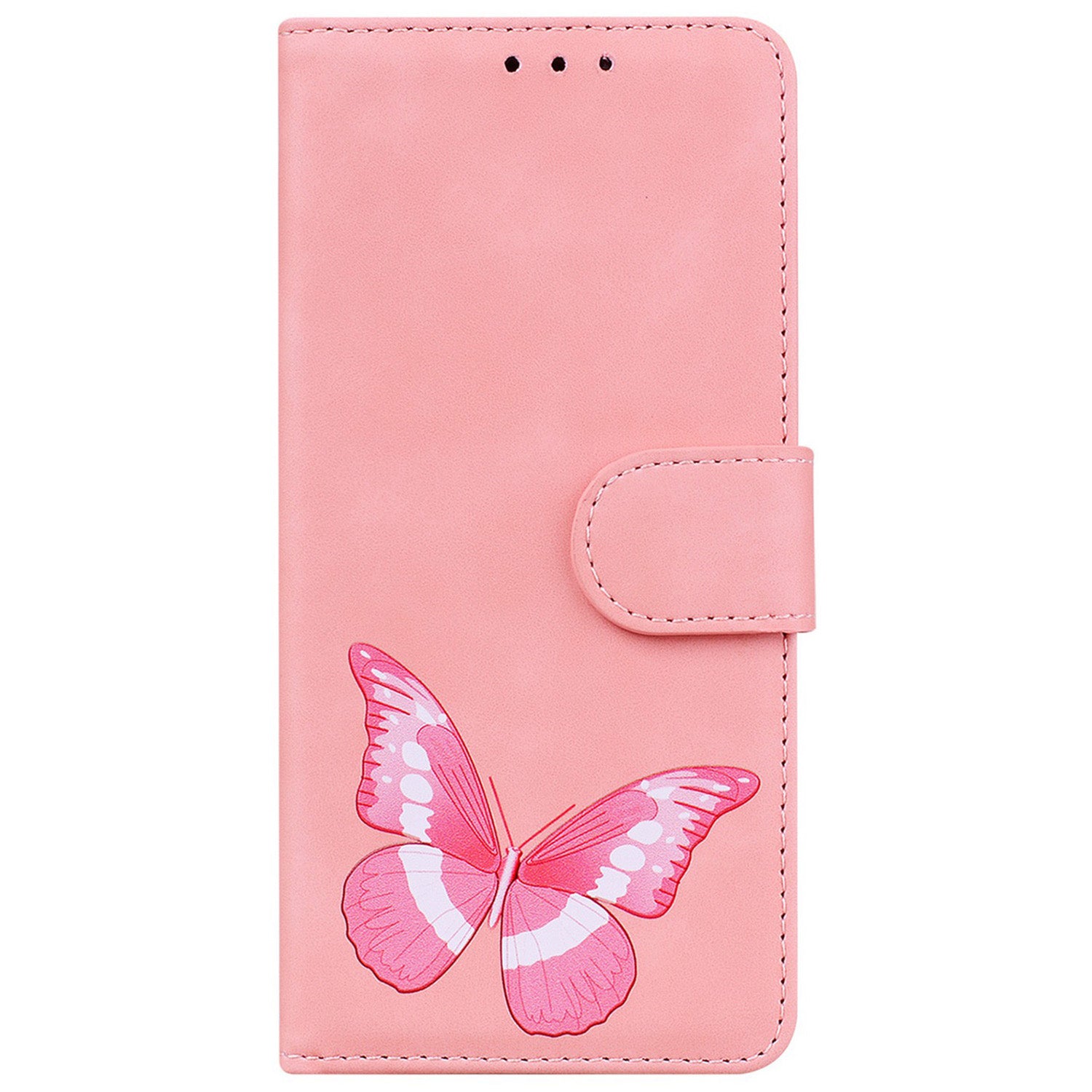 For Samsung Galaxy A16 5G / A16 4G Stand Case PU Leather Phone Cover Butterfly Printed - Pink