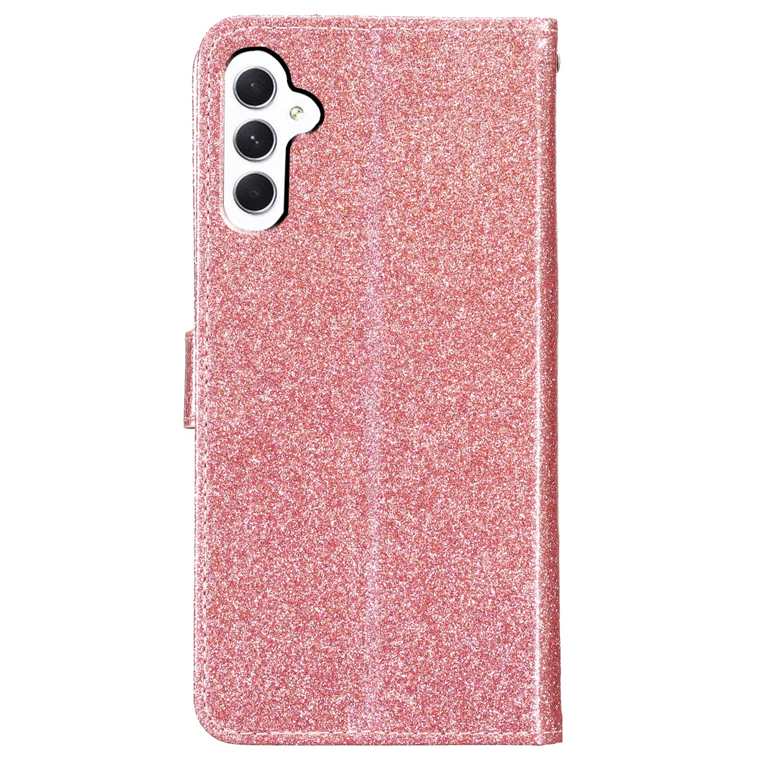 For Samsung Galaxy A16 5G / A16 4G Wallet Case Glitter Anti-Scratch Leather Phone Cover Stand - Rose Gold