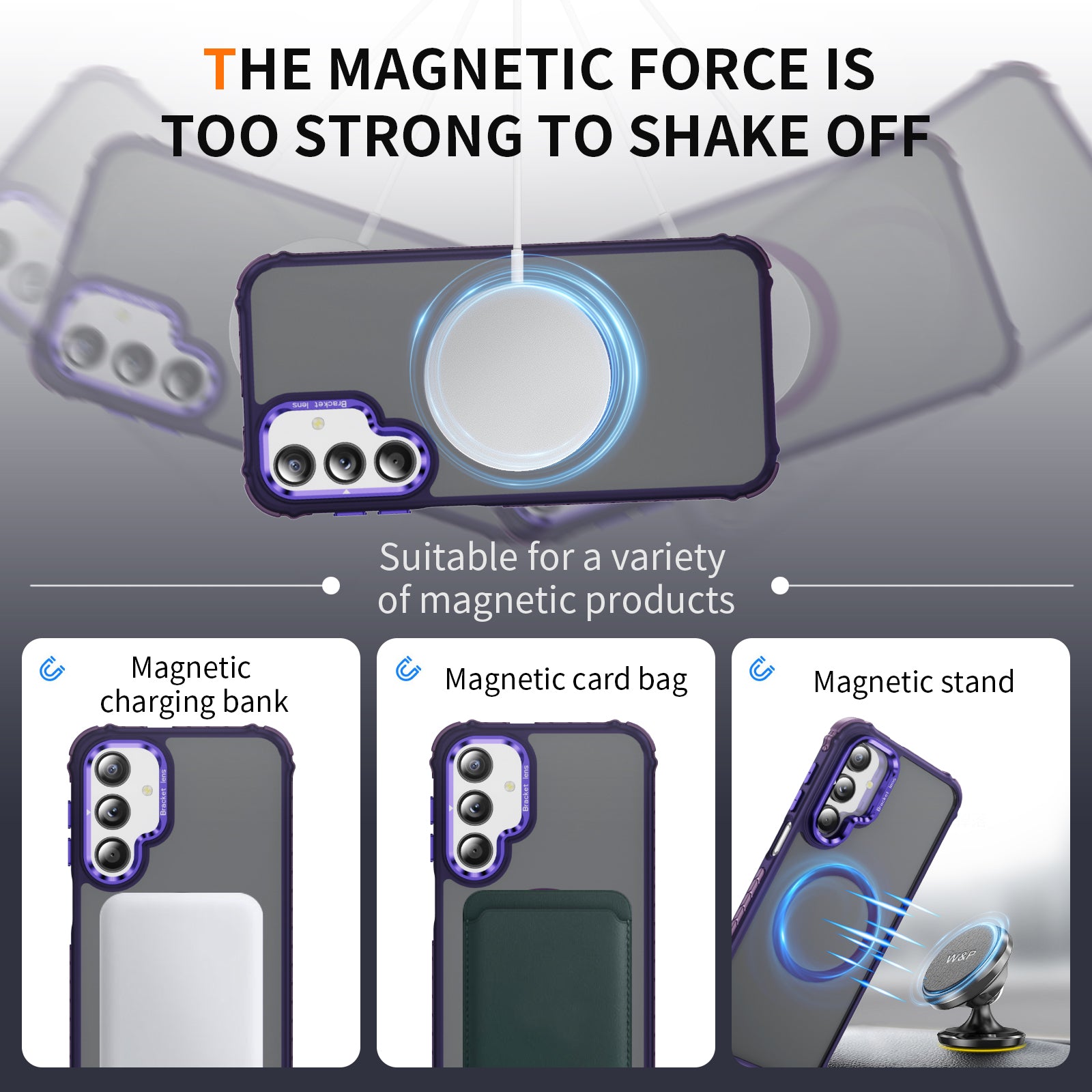 For Samsung Galaxy A16 5G Case with Lens Kickstand Matte Back Cover Compatible with MagSafe - Purple