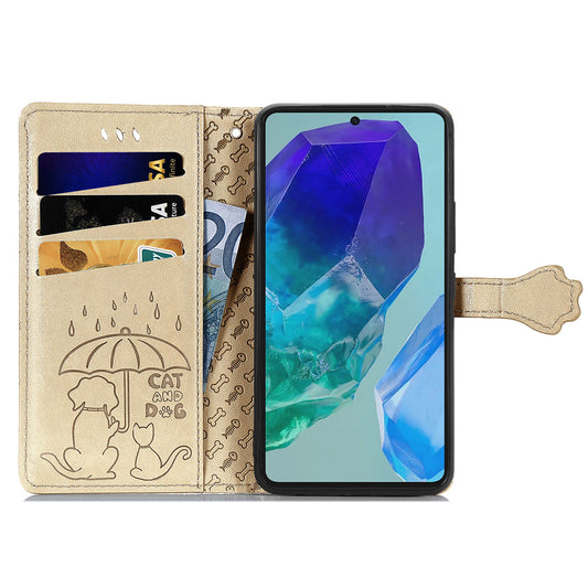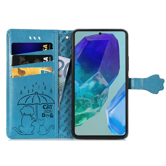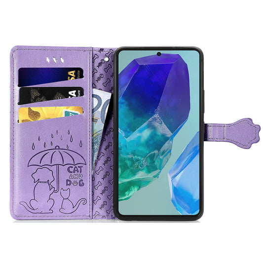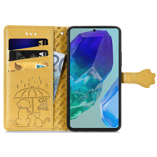 For Samsung Galaxy A16 5G / A16 4G Case Leather Wallet Flip Phone Cover Cute Cat Dog Pattern - Green