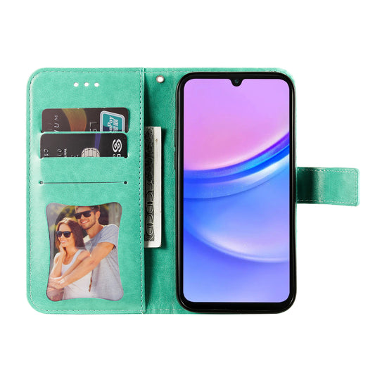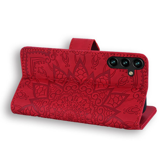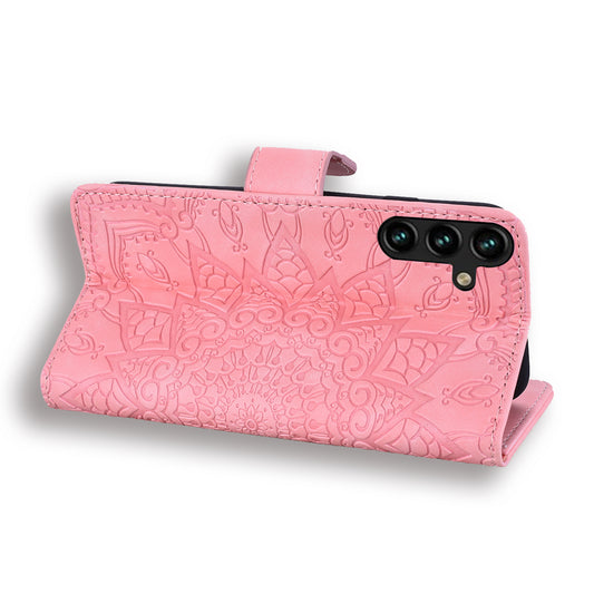 For Samsung Galaxy A16 5G / A16 4G Case PU Leather Wallet Flip Phone Cover Flower Imprinted - Purple