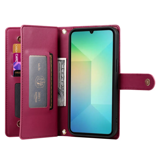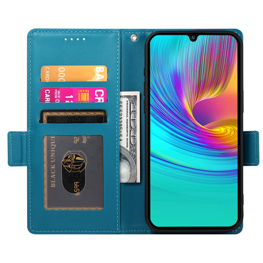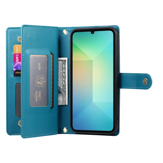 DF-011 For Samsung Galaxy A06 Case Zipper Pocket Wallet Leather Phone Cover with Straps - Mint Green