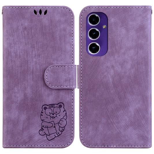 For Samsung Galaxy A16 5G / A16 4G Wallet Case Tiger Imprint Leather Shockproof Phone Cover - Purple