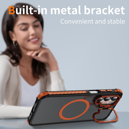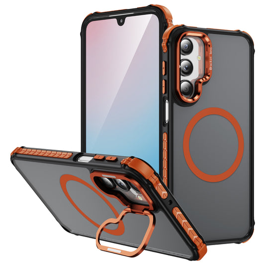 For Samsung Galaxy A16 5G Case with Lens Kickstand Matte Back Cover Compatible with MagSafe - Orange