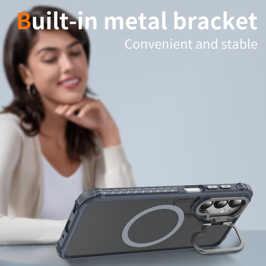 For Samsung Galaxy A16 5G Case with Lens Kickstand Matte Back Cover Compatible with MagSafe - Purple