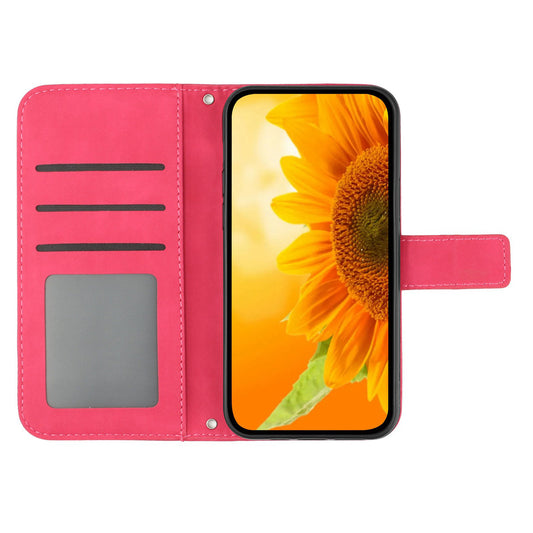 HT04 For Samsung Galaxy A06 Case PU Leather Sunflower Imprint Phone Cover with Long Strap - Wine Red