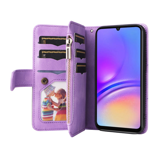 KT Multi-Function Series-5 For Samsung Galaxy A06 Case Zipper Wallet Leather Phone Cover Stand - Red
