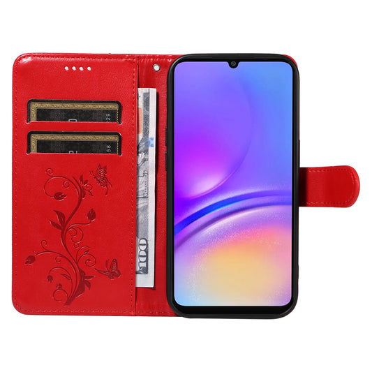 For Samsung Galaxy A06 Case Flower Imprint Leather Flip Wallet Phone Cover with Wrist Strap - Yellow