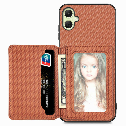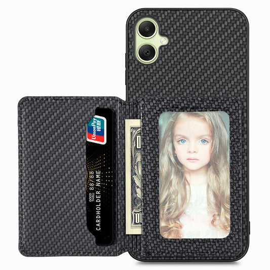 For Samsung Galaxy A06 Case RFID Blocking Card Holder Carbon Fiber Leather+PC+TPU Phone Cover - Blue
