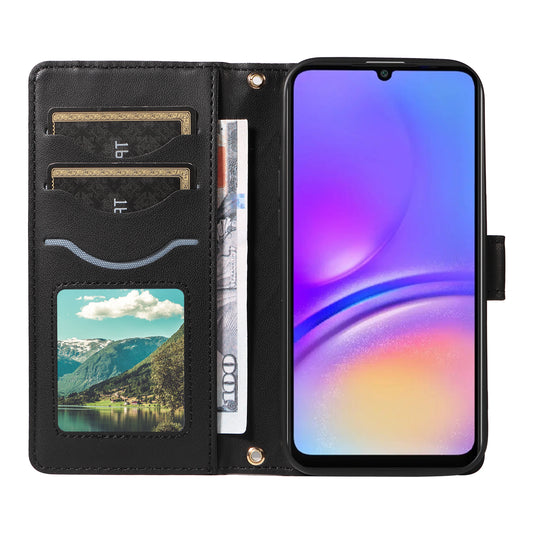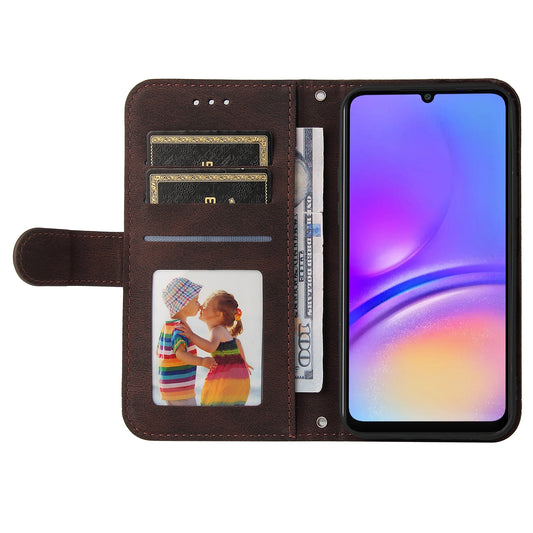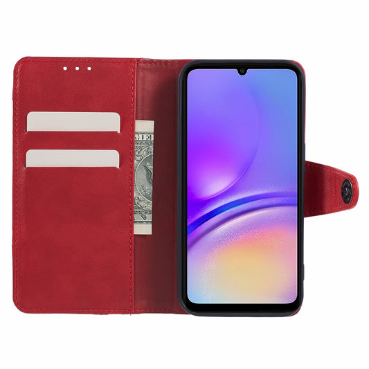 For Samsung Galaxy A06 Case Wallet Leather Phone Cover Crazy Horse Texture+Jeans Cloth Texture - Red