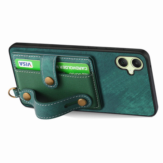 For Samsung Galaxy A06 Case Wristband Kickstand PU Leather+TPU 6D Electroplating Phone Cover - Green