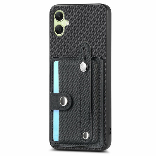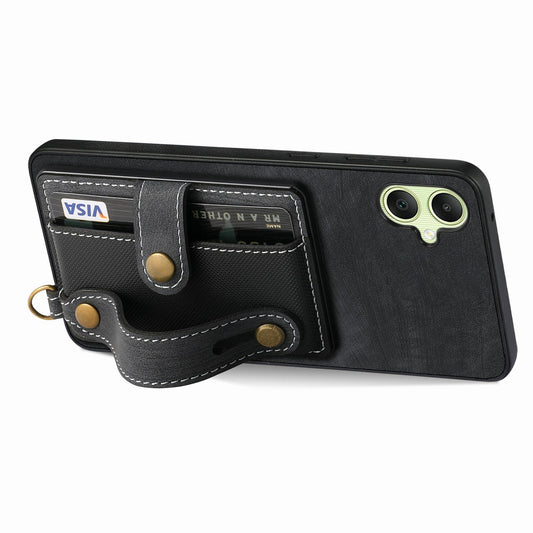 For Samsung Galaxy A06 Case Wristband Kickstand PU Leather+TPU 6D Electroplating Phone Cover - Black