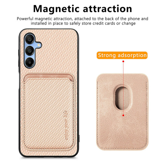 For Samsung Galaxy A16 4G / 5G Case Carbon Fiber Leather Back Cover with Detachable Card Bag - Brown