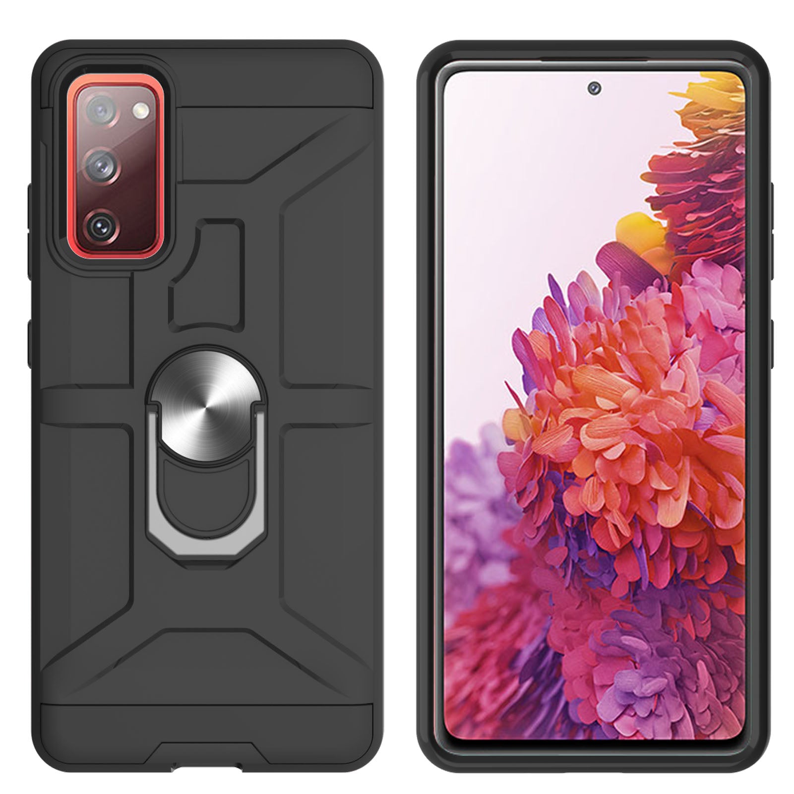 2-in-1 Rubberized Hybrid Phone Case with Finger Ring Kickstand Design for Samsung Galaxy S20 FE 2022/S20 FE 4G/S20 FE 5G/S20 Lite - Black