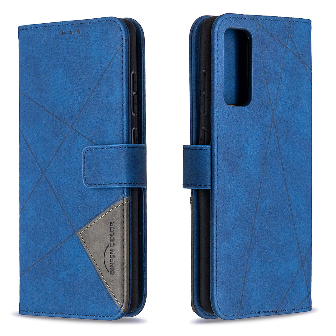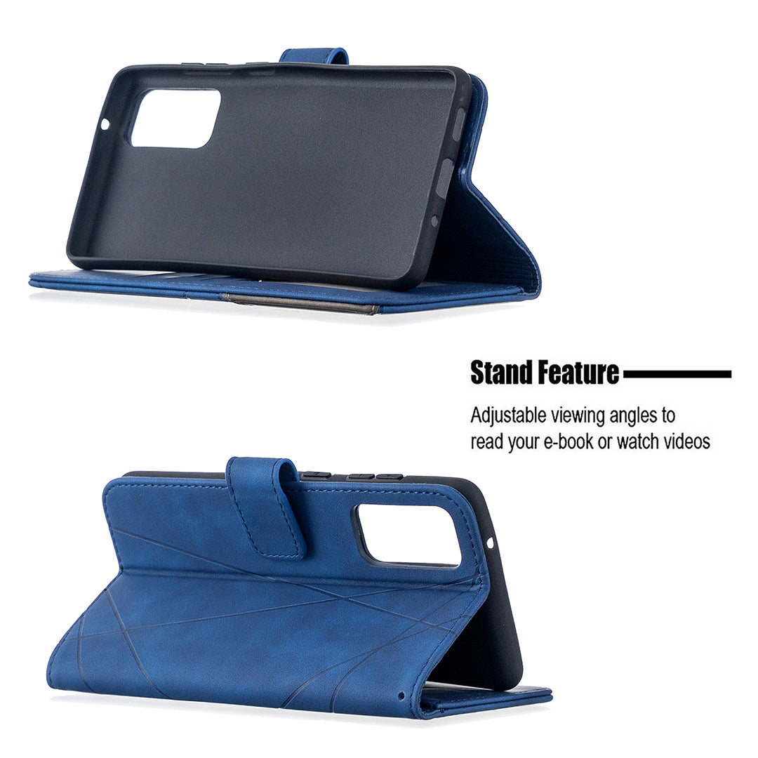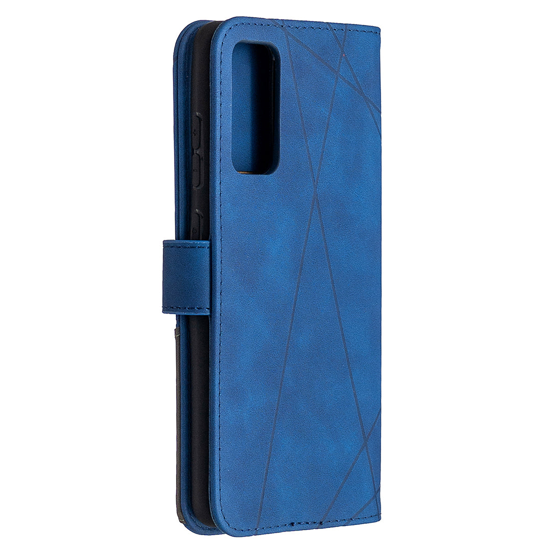 BF05 Geometric Texture Leather Wallet Stand Case Cover for Samsung Galaxy S20 FE 4G/FE 5G/S20 Lite/S20 FE 2022 - Blue