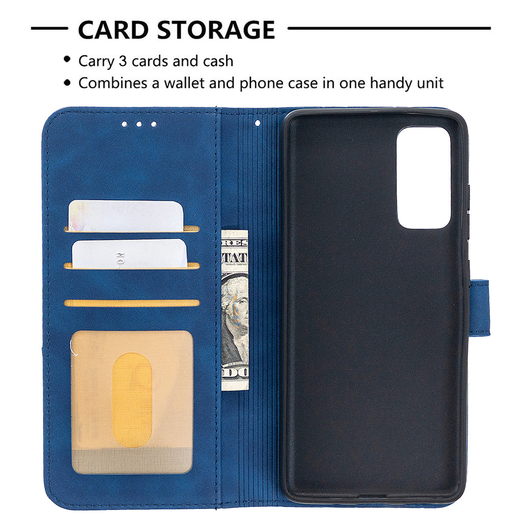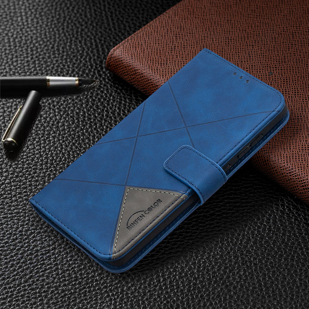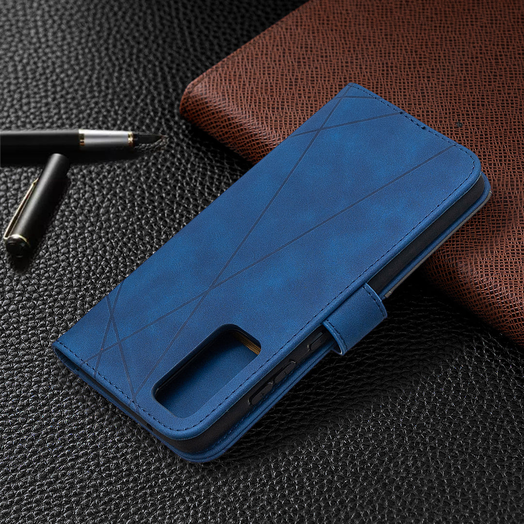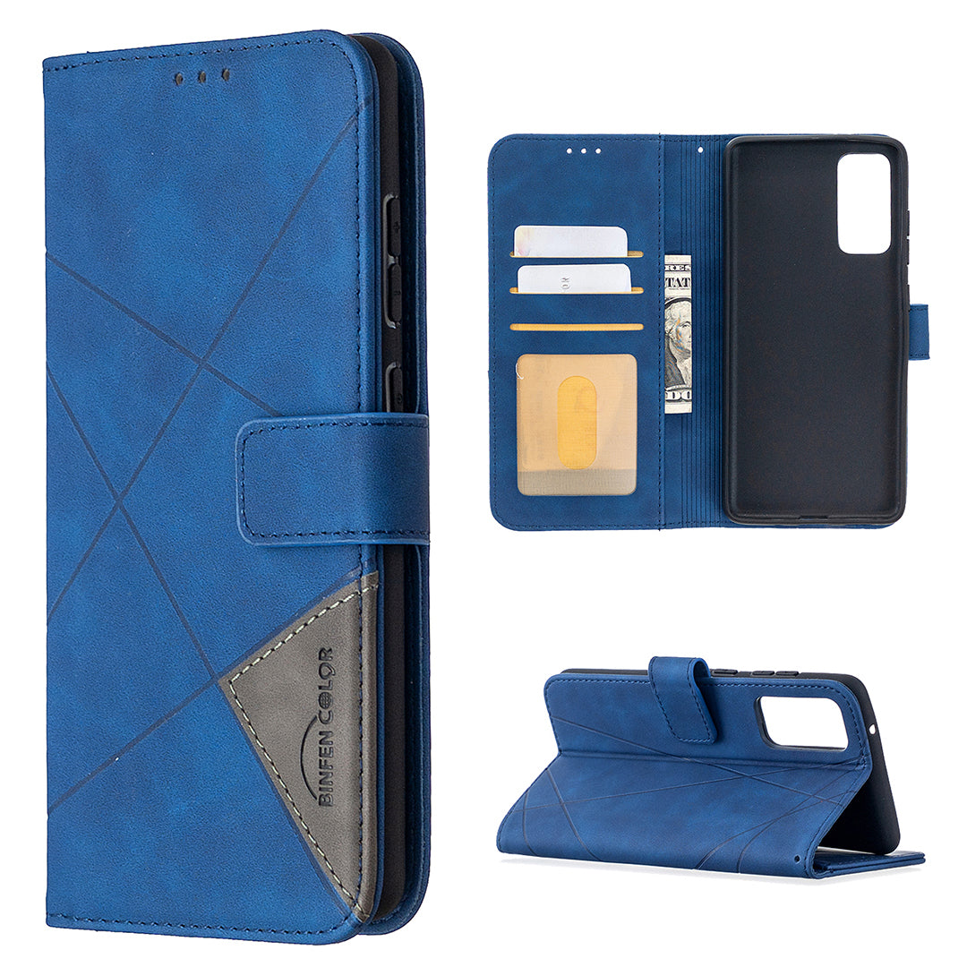 BF05 Geometric Texture Leather Wallet Stand Case Cover for Samsung Galaxy S20 FE 4G/FE 5G/S20 Lite/S20 FE 2022 - Blue