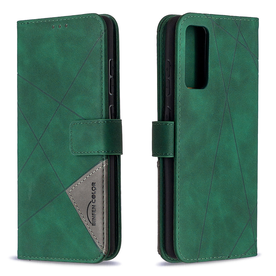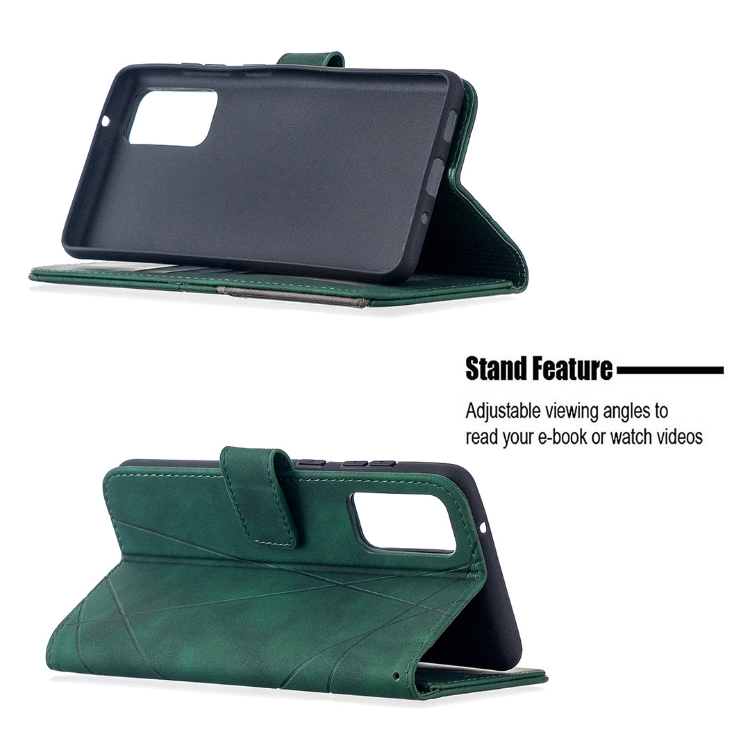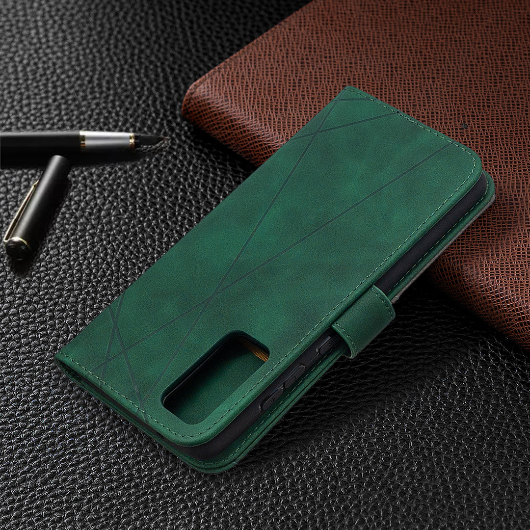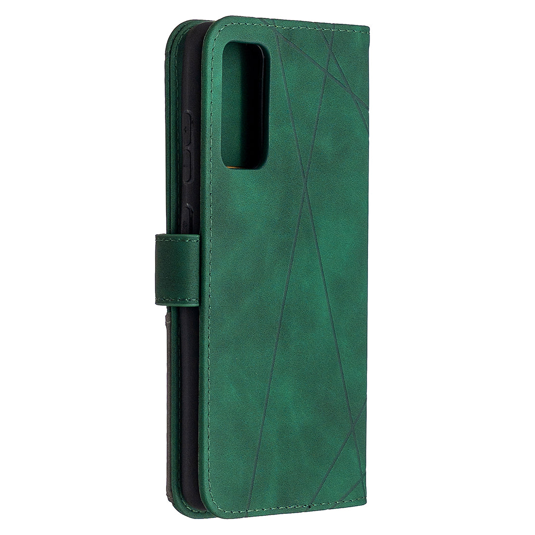 BF05 Geometric Texture Leather Wallet Stand Case Cover for Samsung Galaxy S20 FE 4G/FE 5G/S20 Lite/S20 FE 2022 - Green