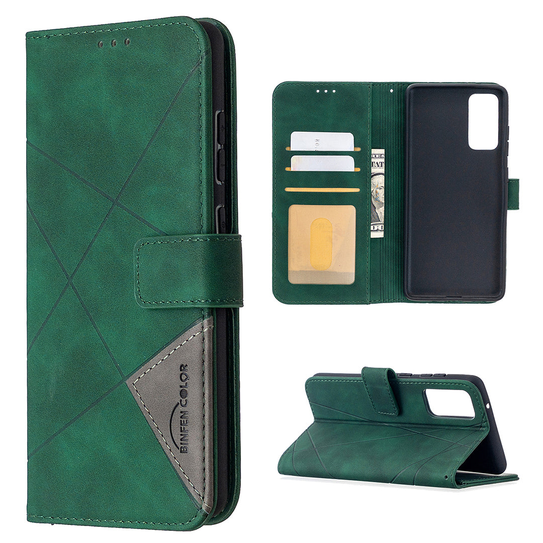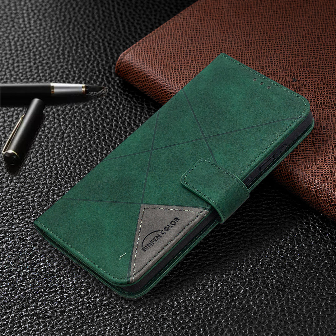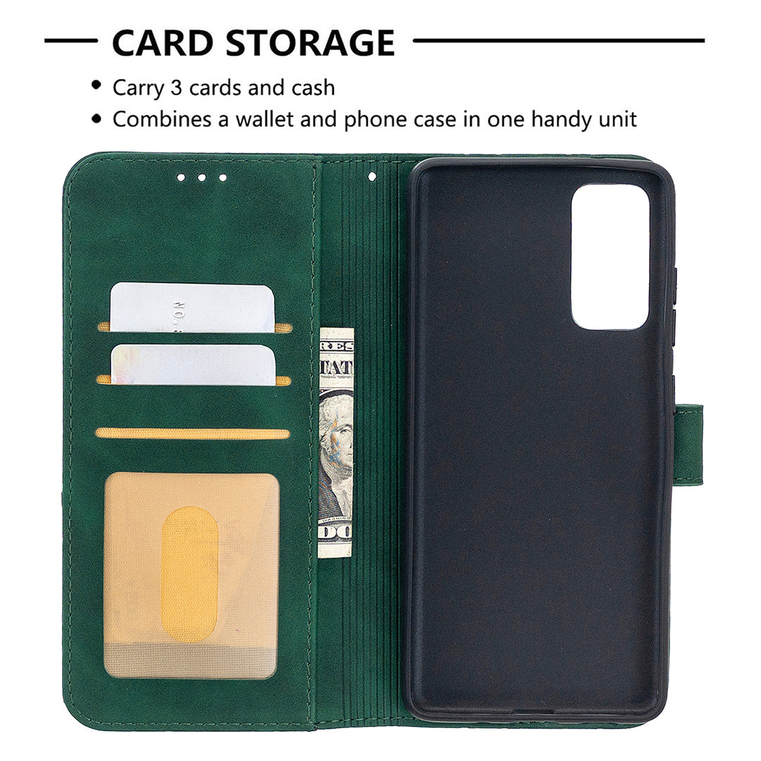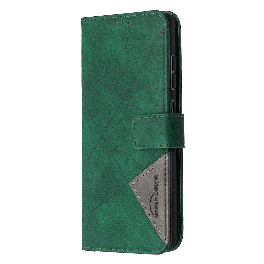 BF05 Geometric Texture Leather Wallet Stand Case Cover for Samsung Galaxy S20 FE 4G/FE 5G/S20 Lite/S20 FE 2022 - Green
