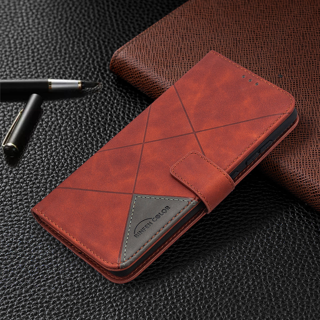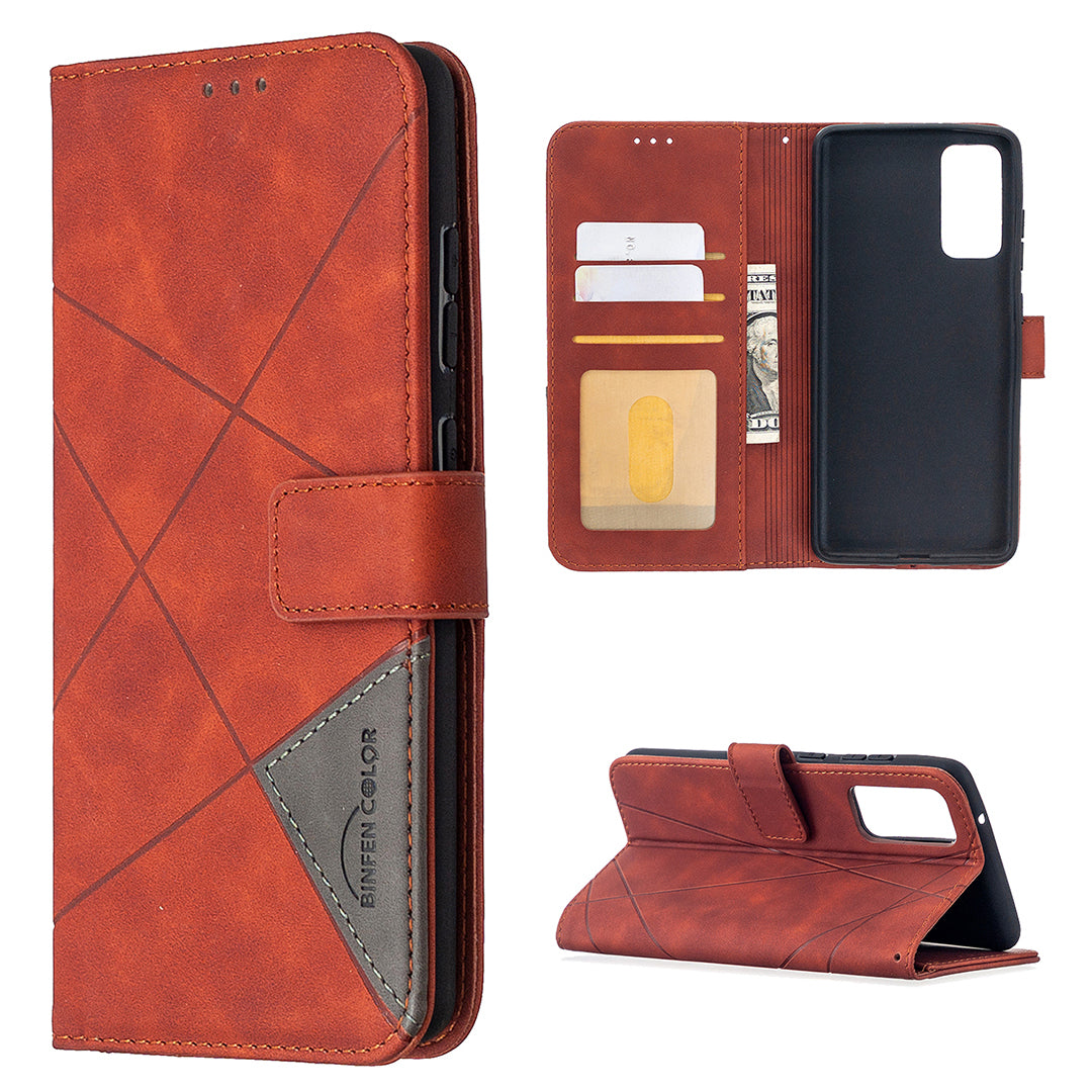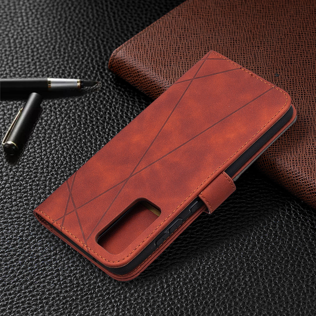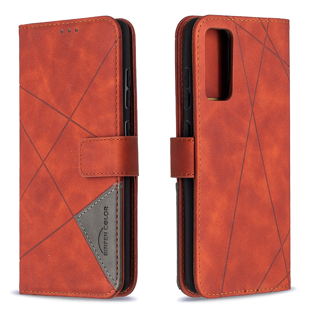 BF05 Geometric Texture Leather Wallet Stand Case Cover for Samsung Galaxy S20 FE 4G/FE 5G/S20 Lite/S20 FE 2022 - Orange
