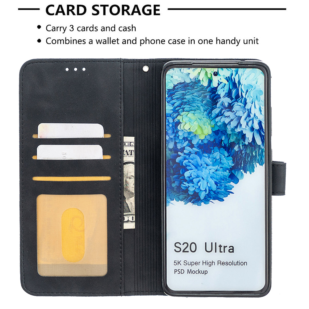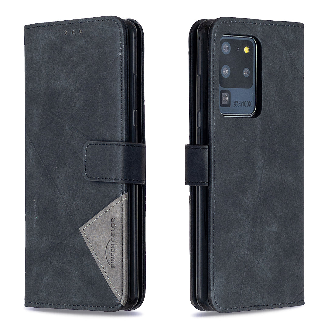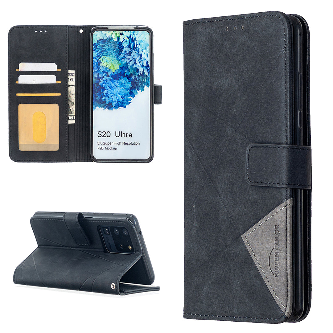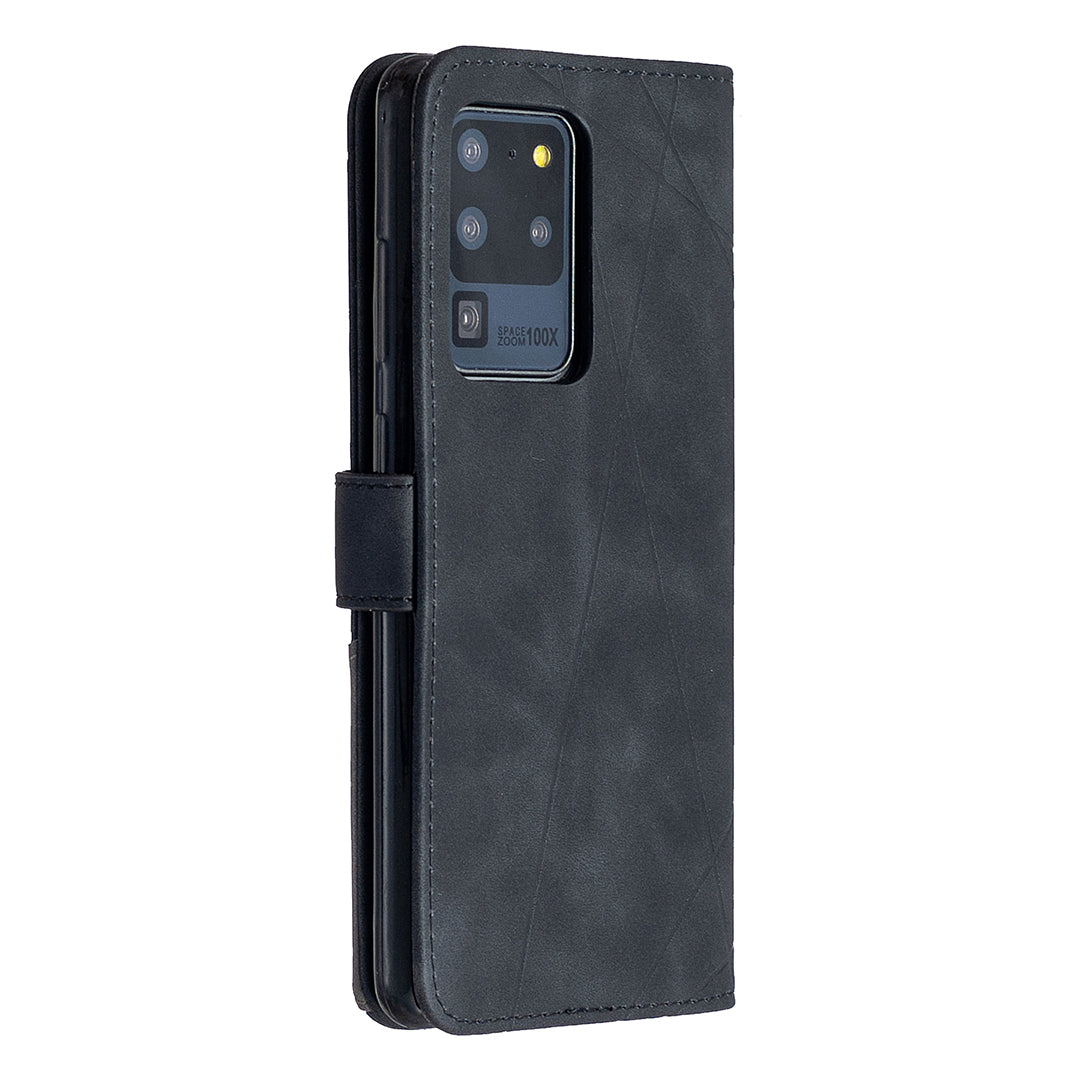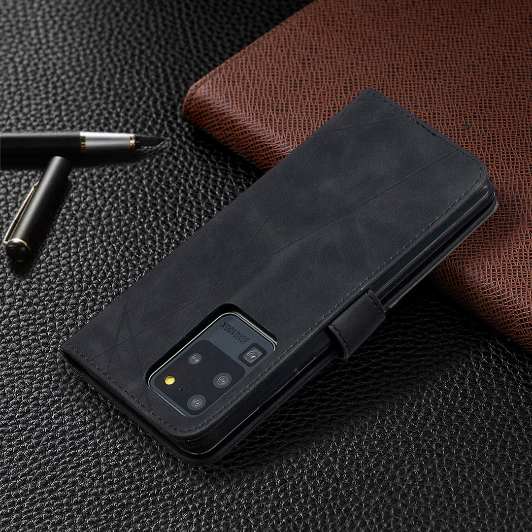 BF05 Leather Case Geometric Texture Wallet Stand Phone Shell for Samsung Galaxy S20 Ultra - Black
