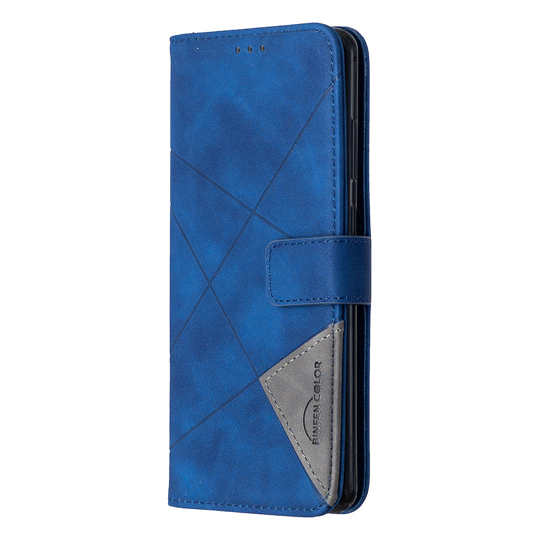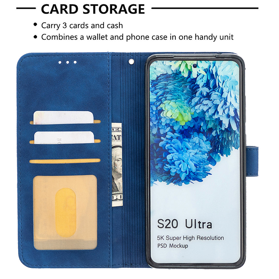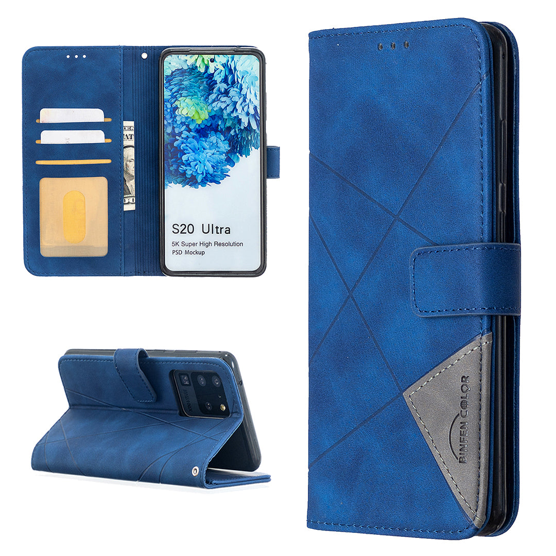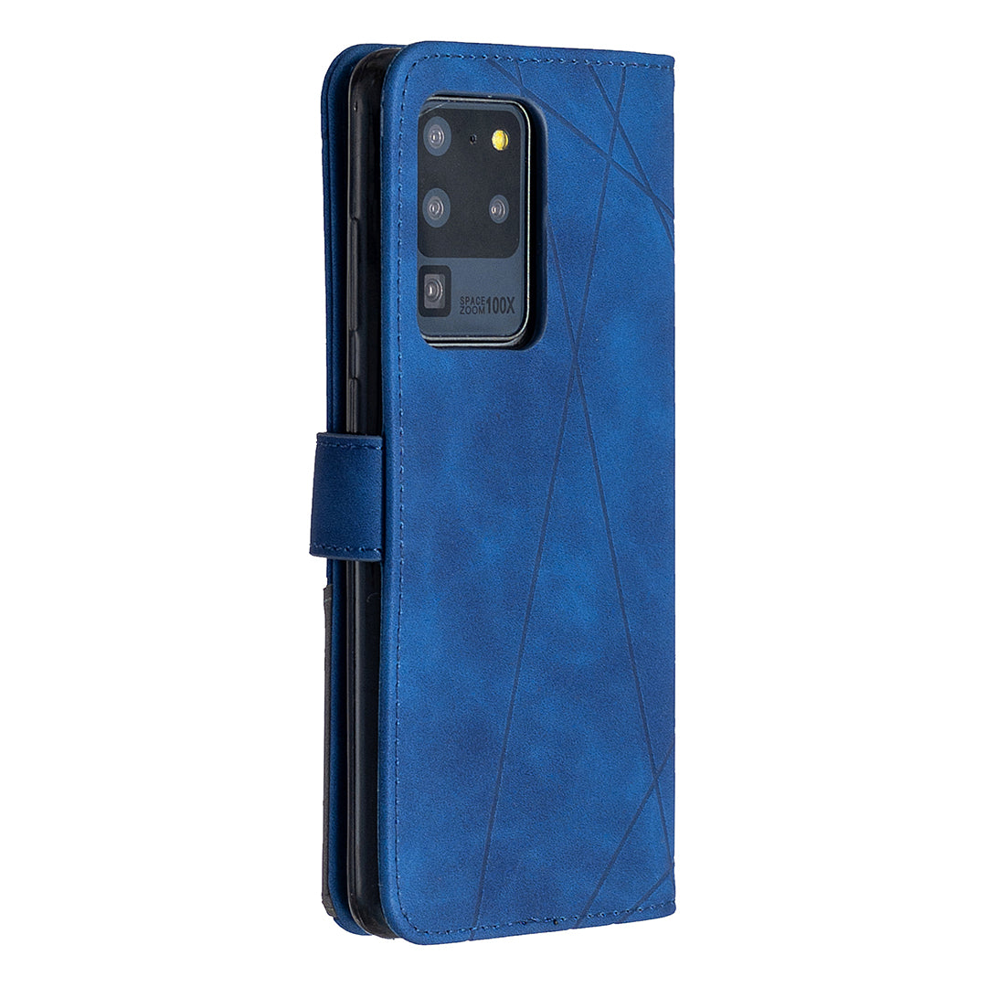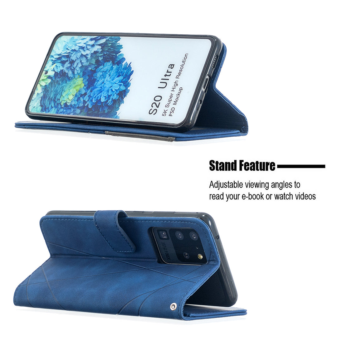 BF05 Leather Case Geometric Texture Wallet Stand Phone Shell for Samsung Galaxy S20 Ultra - Blue