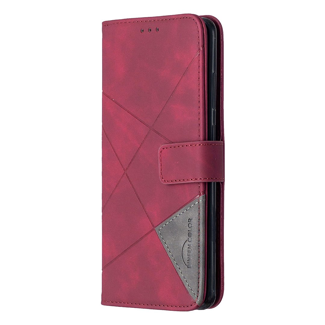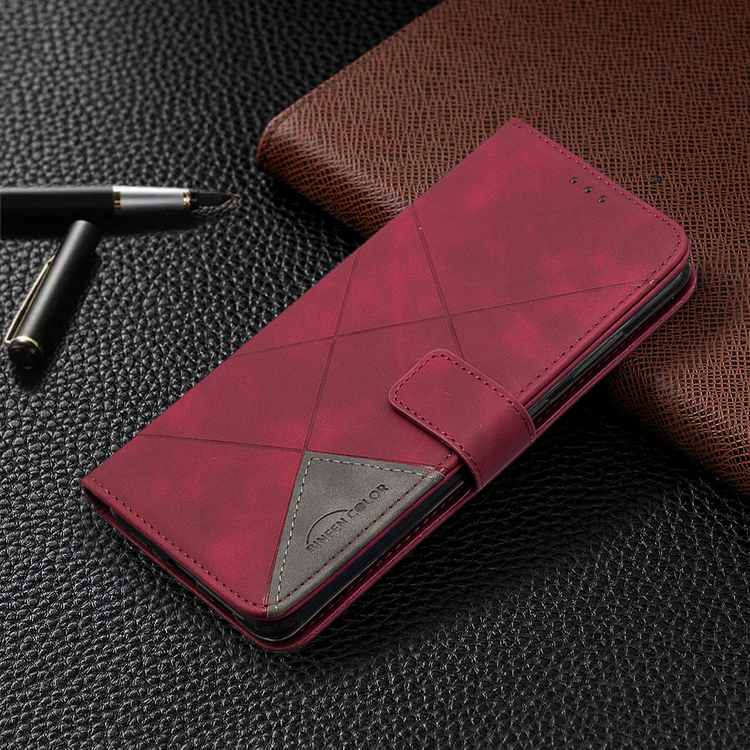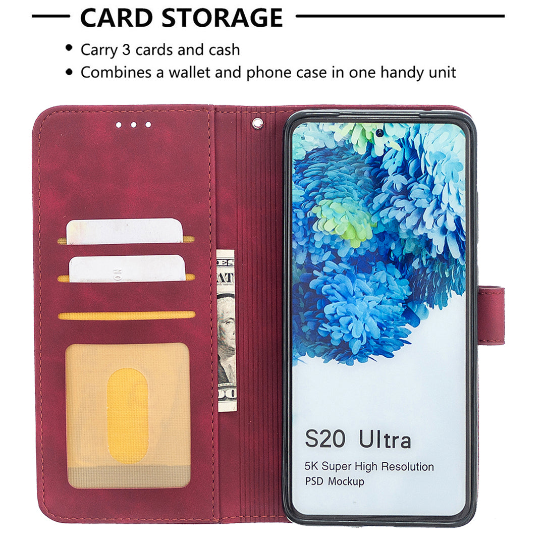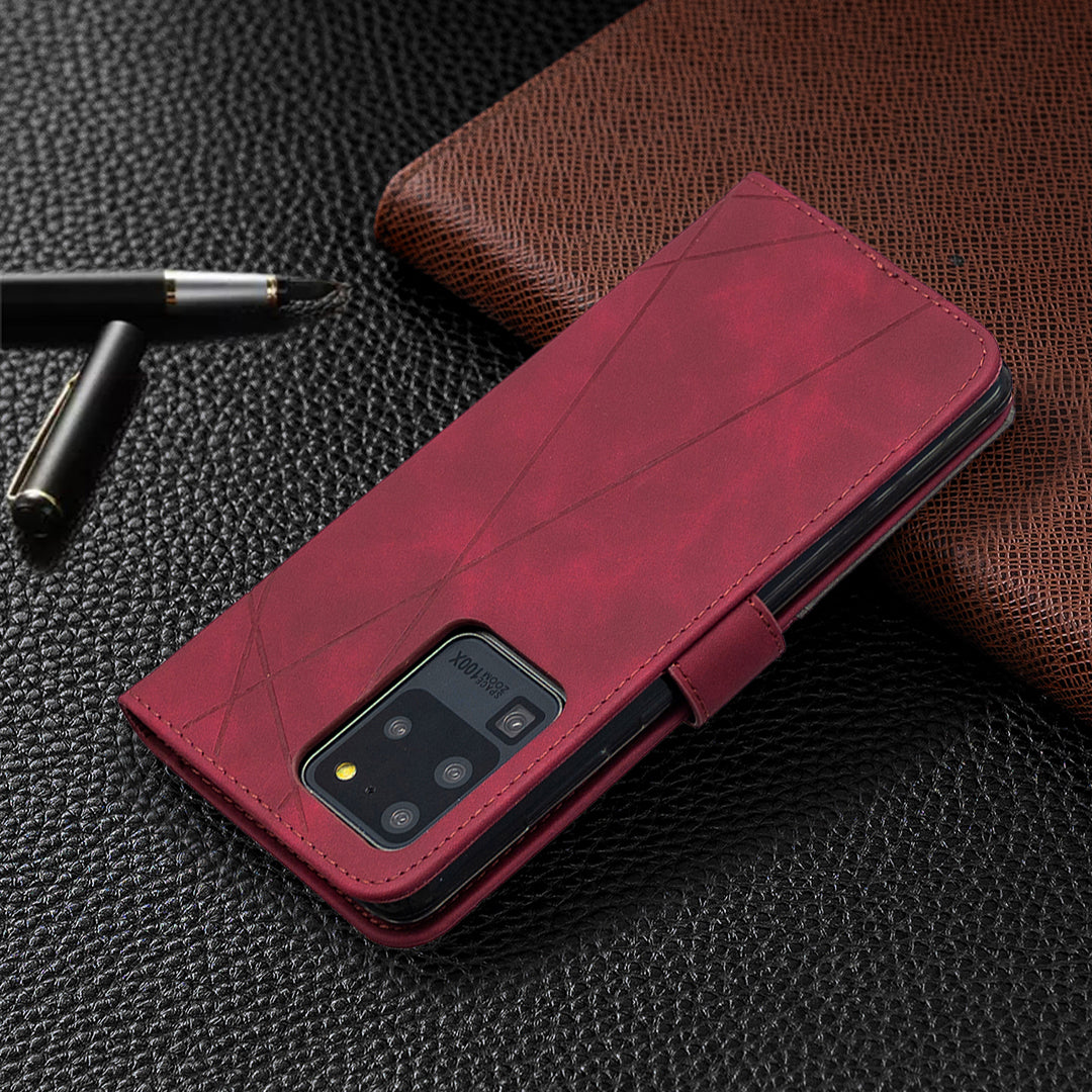 BF05 Leather Case Geometric Texture Wallet Stand Phone Shell for Samsung Galaxy S20 Ultra - Wine Red