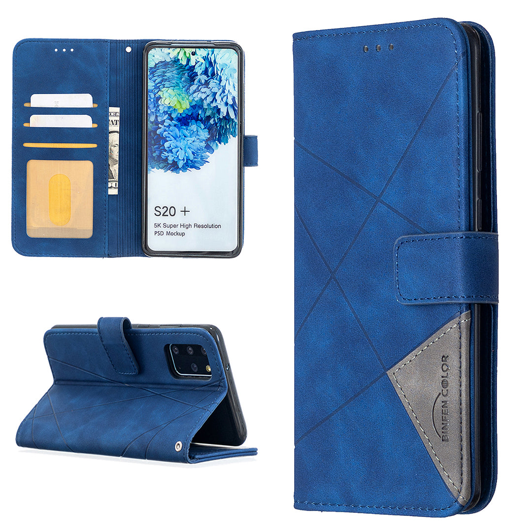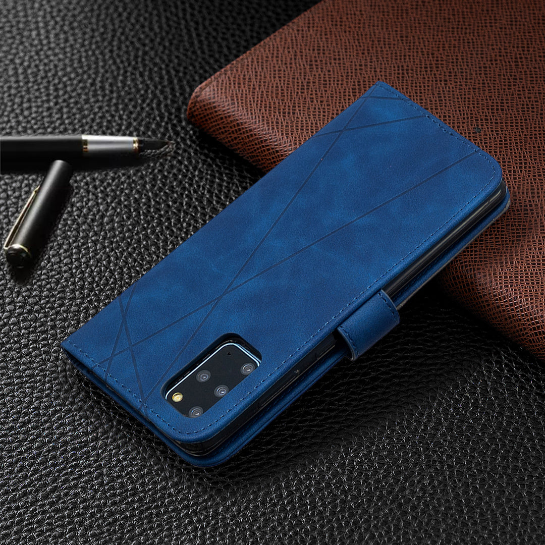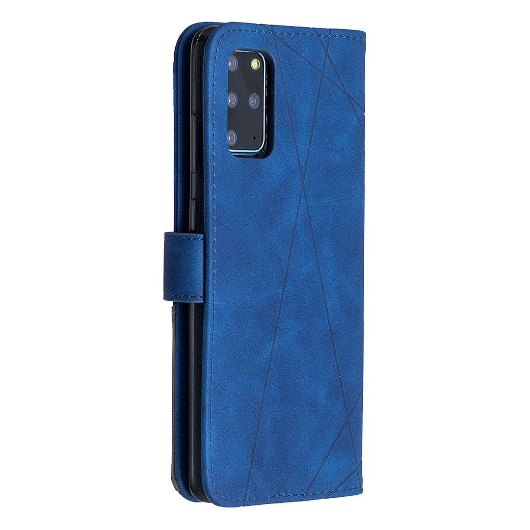 BF05 Style Geometric Texture Leather Cover for Samsung Galaxy S20 Plus - Blue