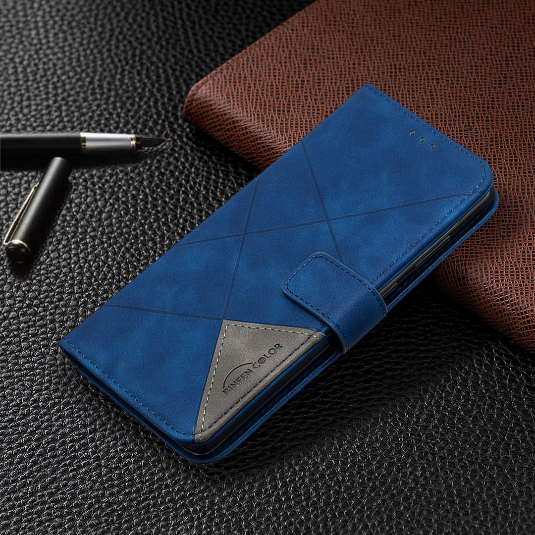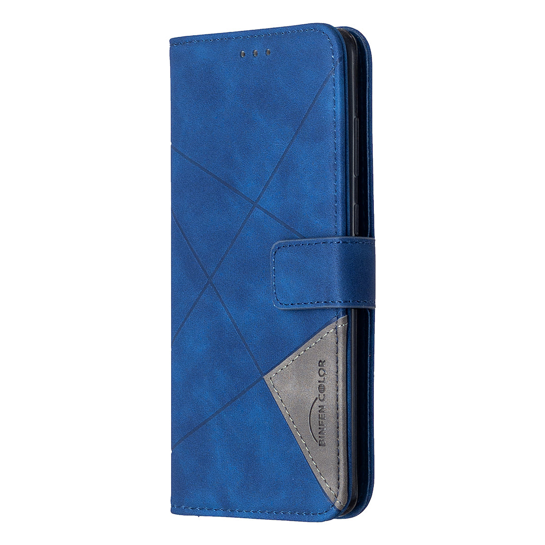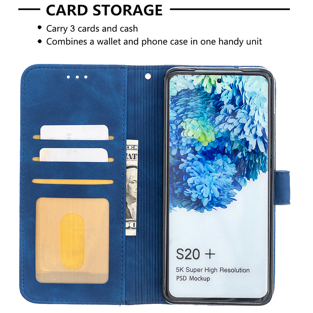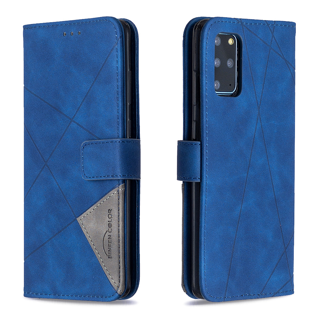 BF05 Style Geometric Texture Leather Cover for Samsung Galaxy S20 Plus - Blue